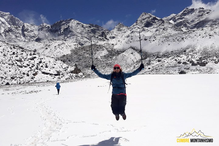 Um dia longo de aproximadamente 10h de trekking, onde saímos de Lumgde (4.380m) as 5:30h e enfrentamos um desnível de 1.100m de subida e 690m de descida, divididos em cerca de 12km pelas montanhas até chegar em Gokyo (4.790m). Todo o caminho com muita neve acumulada, um pouco de neve caindo e bastante frio, apesar de um bom ciclo de aclimatação era a primeira vez que cruzavamos o límite dos 5.000m e o corpo sentia isso.
