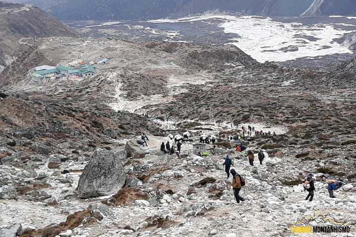 Depois tivemos mais um dia até Lobuche, onde já conectamos no circuito tradicional de trekking e no próximo dia de caminhada chegamos ao esperado Campo Base do Everest (5.364m). Na manhã seguinte finalizamos alcançando o ponto mais alto da expedição, o cume do Kala Pathar com 5.545m.