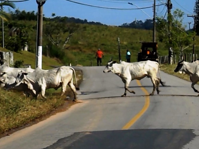 Em determinado momento, um senhor parado em uma porteira nos solicitou a passarmos rápido, ou não passaríamos mais por ali. Se tratava de uma boiada que passaria de um pasto a outro por pequenas porteiras exatamente onde estávamos. Passamos e paramos para admirar este momento. Foi muita sorte. Mantivemos certa distância conforme nos alertaram. A quantidade de gado era enorme. Nós ficamos ali por um tempo. Cena inesquecível.