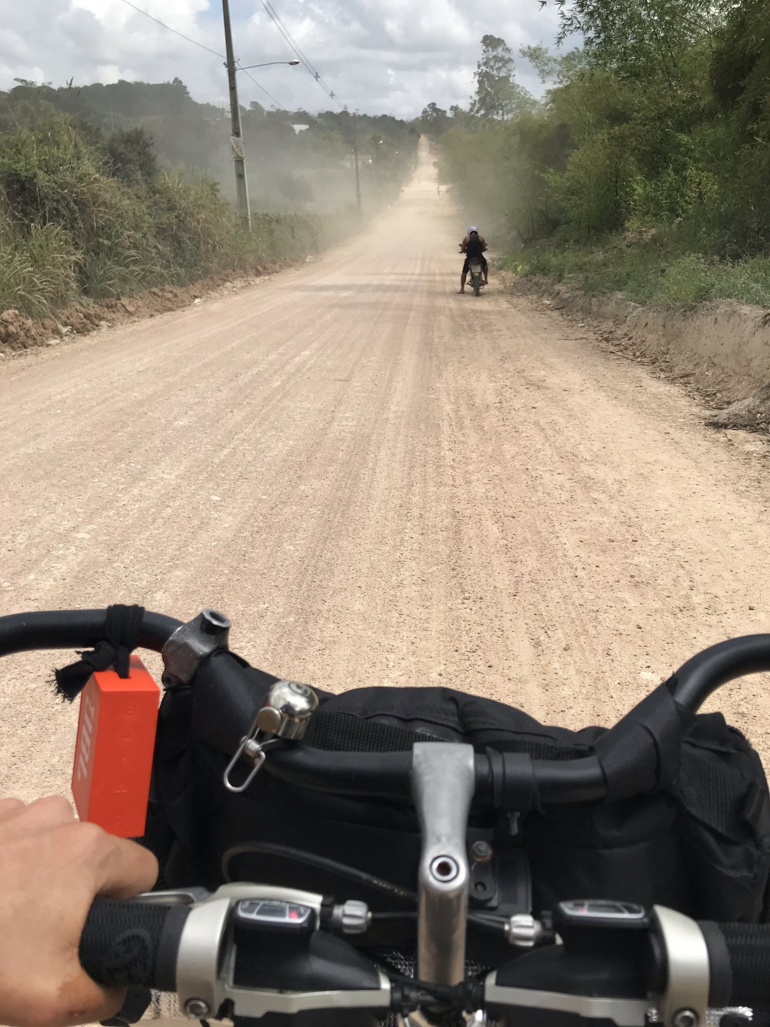 Estradinha pós Bonança: cascalho, ladeiras e poeiras levantadas pelos carros e motos.