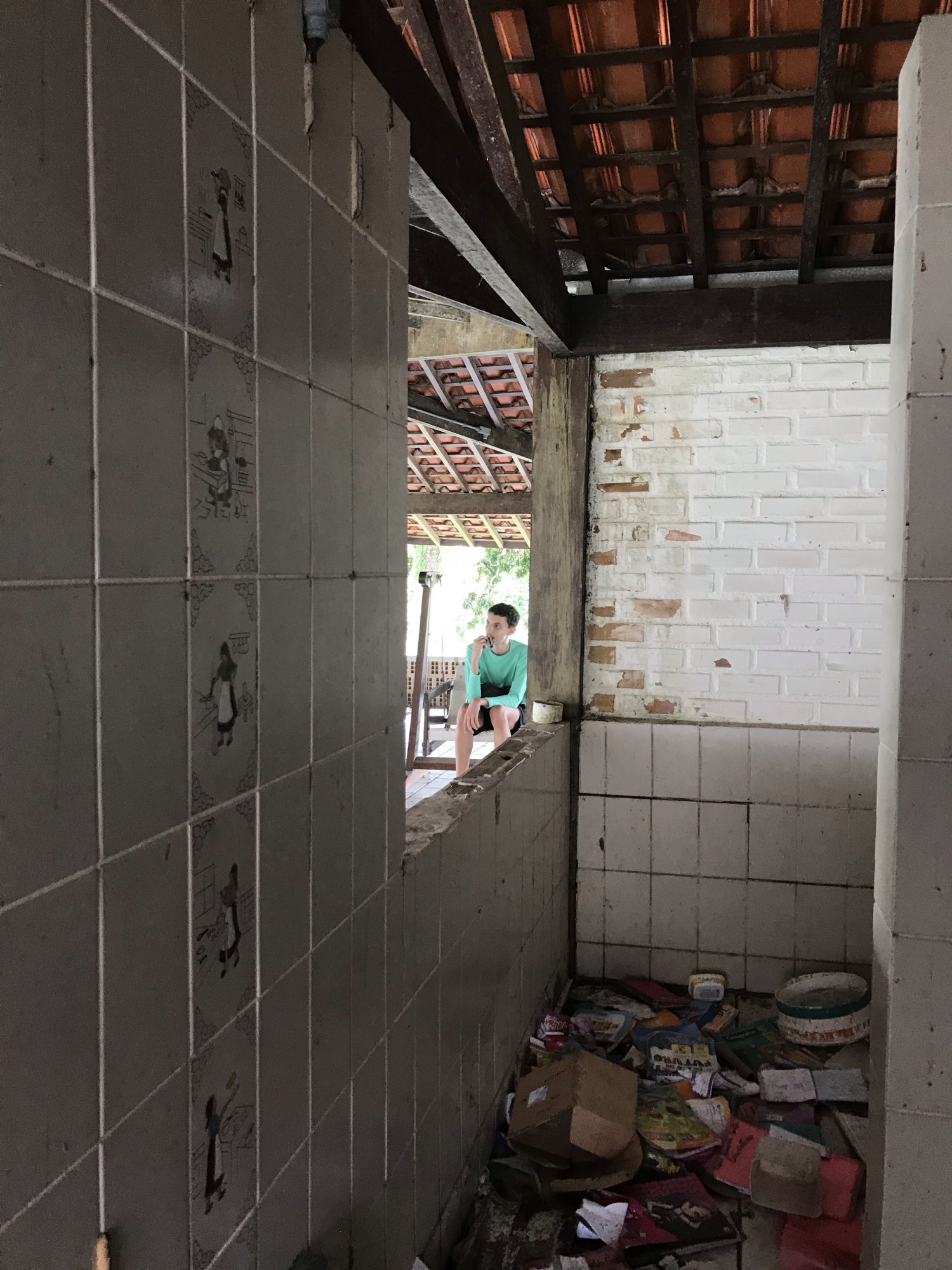 Antes de Isaac ir embora ficamos perambulando pelo local, a observar as plantas, entrando em todas as edificações, nos esquivando dos insetos, saltando moitas de urtigas, atentos para pisar em cobras e no mais... curtindo a paisagem. Para muitas pessoas aquilo ali seria um tédio, mas a gente gosta de observar pequenas coisas. Plantinhas novas e curiosas, ramagens que descem das árvores, casas de marimbondos de diversos tipos, os vãos das casas ao redor com resquícios de um tempo em que foram ocupadas. Ficamos a imaginar quem seriam as pessoas que viveram ali, como teria sido suas vidas, foram felizes, por que abandonaram o lugar? Que histórias habitavam aqueles espaços? “O que será que essas paredes já ouviram?” - disse Isaac. Ora, quem tem imaginação, não tem tédio.