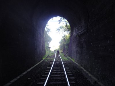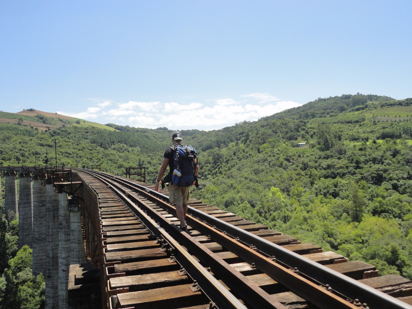 Trekking sobre os dormentes no trecho Guaporé-RS/ Muçum-RS.