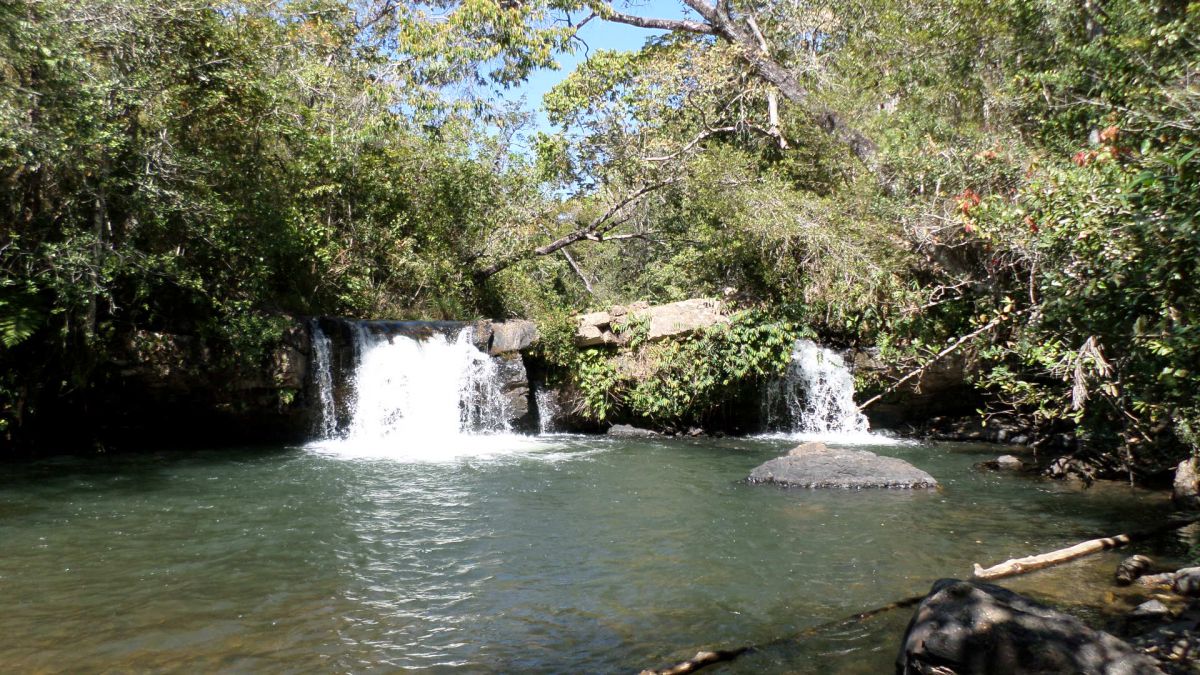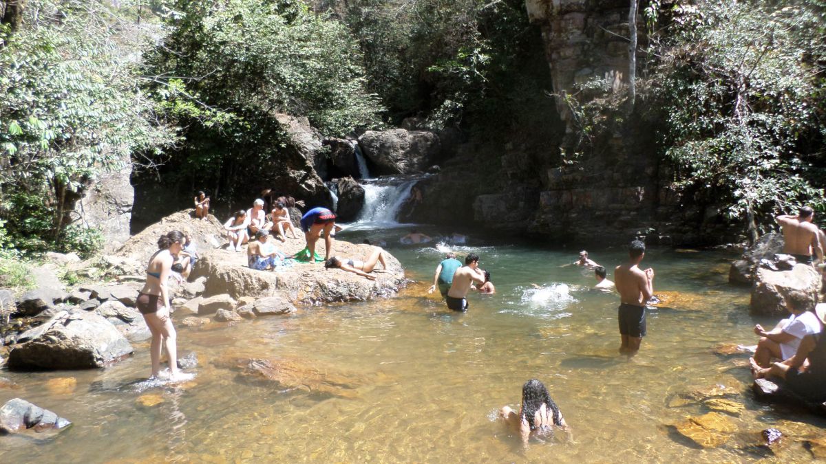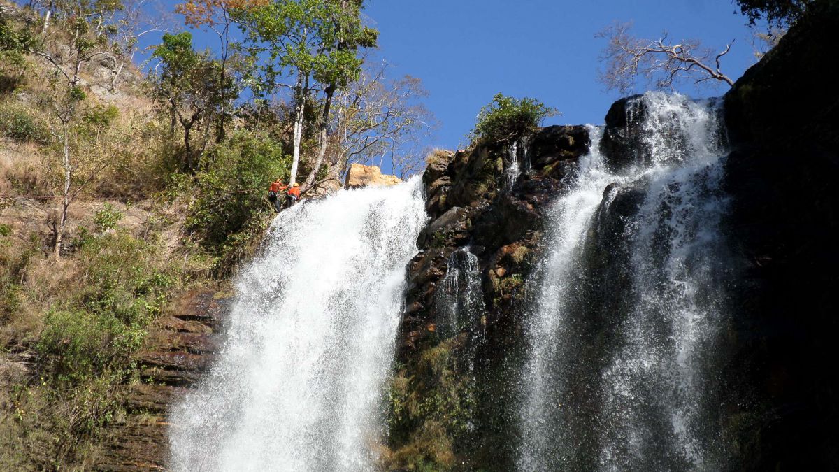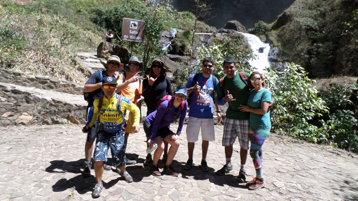 Trilha de 7km iniciando pela fazenda Indaiá, passando pela cachoeira do Indaiá, Véu de Noiva, do topo da cachoeira do Itiquira até a base