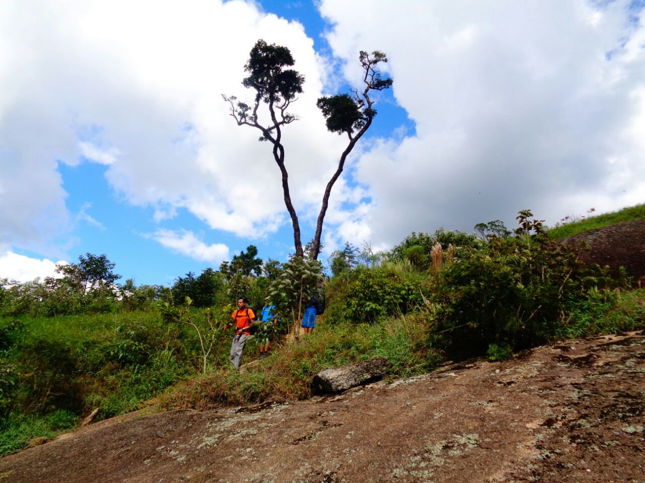 Por volta das 14h decidimos descer pela Trilha da Mangueira. Ela está entre as trilhas dos Monges e Minha Deusa. Após passar por todo o lajeado da Pedra Grande, siga adiante por aproximadamente 150 metros e vire à esqueda. Após mais uns 200 metros, a Trilha dos Monges desce à esquerda, siga adiante e após cerca de 500 metros, vire à esquerda, essa é a Trilha das Mangueiras. É necessário maior atenção nessa trilha, pois ela não é bem demarcada e tão pouco, sinalizada, e a vegetação geralmente está alta. Mas, certamente é o trecho mais interessante da travessia, uma descida em meio aos afloramentos rochosos e a vegetação campestre, que lembram um pouco a Serra da Mantiqueira, com cerca de 1,5 km e um pouco mais de 400 metros de desnível!