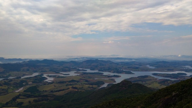 Atingimos a Pedra do Sapo, e pela primeira vez foi possível visualizar o munícipio de Extrema. Em seguida, se inicia a Trilha do Pinheirinho que se estende até a Torre da Embratel. A partir dali, iniciamos a caminhada em chão de concreto até o Trevo. Seguimos sentido a Rampa de Voo Livre >> Portal das Pousadas, logo a frente, bifurcação à esquerda para a trilha que leva ao Pico do Lopo. Após alguns kms nesta trilha há uma trifurcação sinalizada. Entramos a direita na Pedra do Marino e avistamos pela primeira vez o Pico do Lopo, já estava escurecendo e tivemos que acelerar nossos passos.