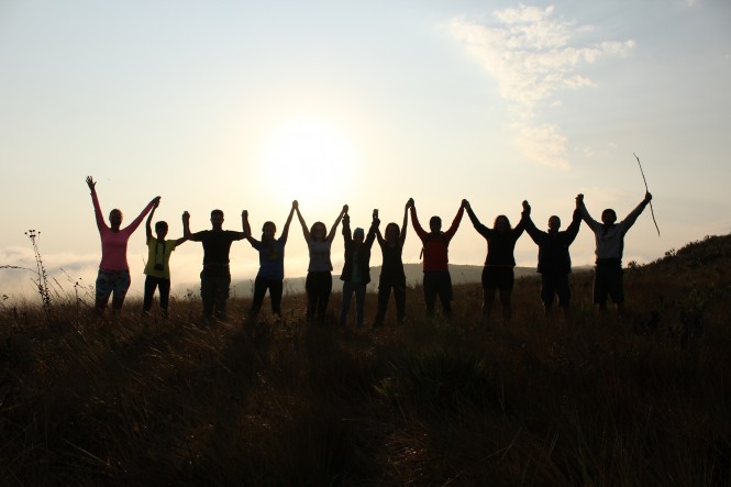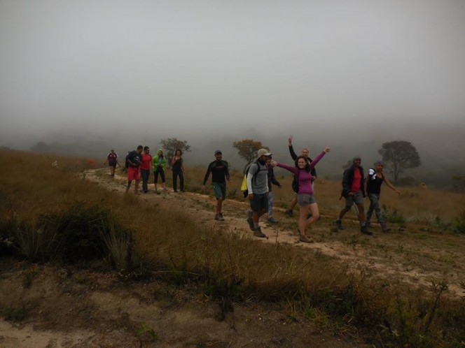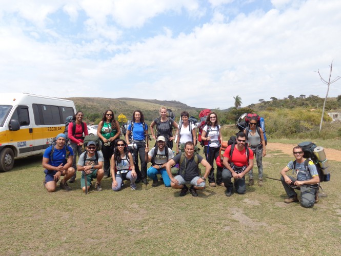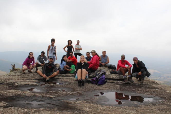 Não fizemos paradas na volta, pois vimos que o chuvisco não ia demorar muito pra se converter num temporal. Então, apertamos o passo como pudemos e fizemos o caminho de volta. Chegamos ao complexo por volta de 12h. Todos felizes por terem feito a travessia de boa, sem problemas! Tiramos a fotos final, carregamos a van e... o toró caiu! Então, já dentro van, voltamos a Carrancas para almoçar e voltar ao Rio.