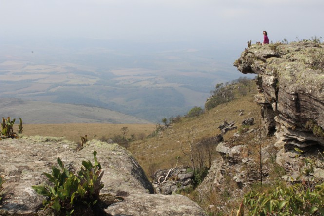 Fomos até a parte alta de uma outra cachoeira, a Topo da Serra das Broas, passando pela nascente que gerava a mesma. Essa queda devia ter uns 120m, linda demais! Passando pela nascente, cheguei até o mirante, a vista era bem linda e dava pra Serra das Broas, formações que deram à Chapada das Perdizes a designação de chapada.