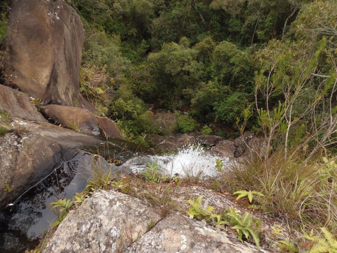Aí, começamos a descer e fazer a trilha de volta ao acampamento. O tempo instável nos dava indícios que iria chover. Era bom que arrumássemos tudo logo, pois na trilha de volta ao Complexo da Zilda teríamos um rio pra atravessar, dependendo da quantidade de chuva, seria inviável.