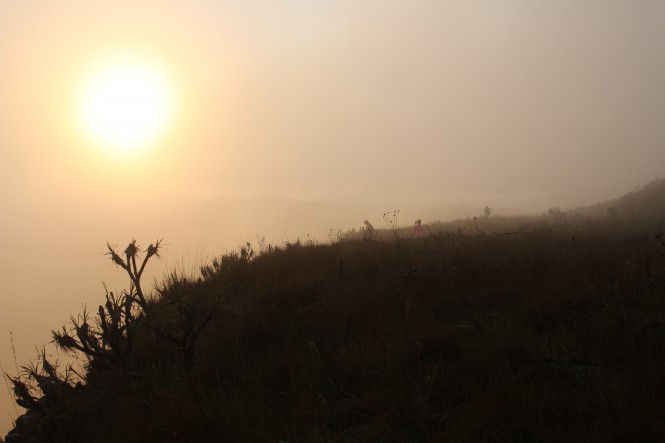 Dia 3: Acordamos cedinho pra ver o nascer do Sol antes de partir. O tempo estava meio nebuloso, mas resolvemos subir a Broa mesmo assim. Fizemos uma trilha rápida de 30 minutos até o topo dela. A sorte realmente estava ao nosso lado. Meio tímido, vimos o nascer do Sol escutando canto de pássaros, sentindo a brisa fria. Foi lindo. Ficamos lá em cima um pouco...