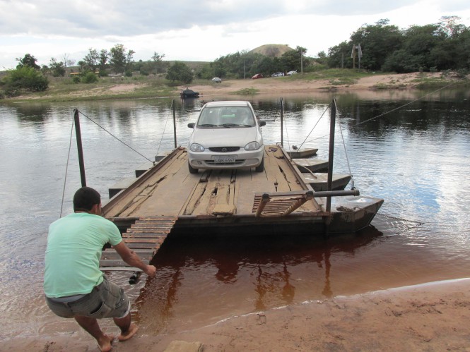 Barriga cheia, nos informamos sobre como chegar a Nova Redenção para visitar nosso último atrativo, o Poço Azul. Seguimos por uma estrada de terra, a mais bonita estrada de terra que já vi, até a entrada de uma fazenda. Aí, 'invadimos' a fazenda até a beirada de um rio, onde tinha uma travessia de "balsa" até o outro lado, onde ficava o Poço Azul. O cara da balsa era a pessoa mais simpática e zueira que eu já tinha visto. Todo o tempo que ficamos ali o cara nos fez rir.