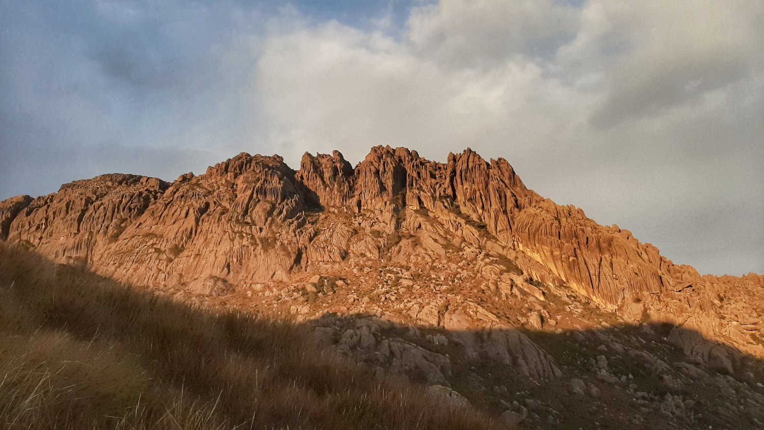 As luzes do fim de tarde incidindo nas Agulhas Negras, vista a partir da trilha da Pedra do Altar