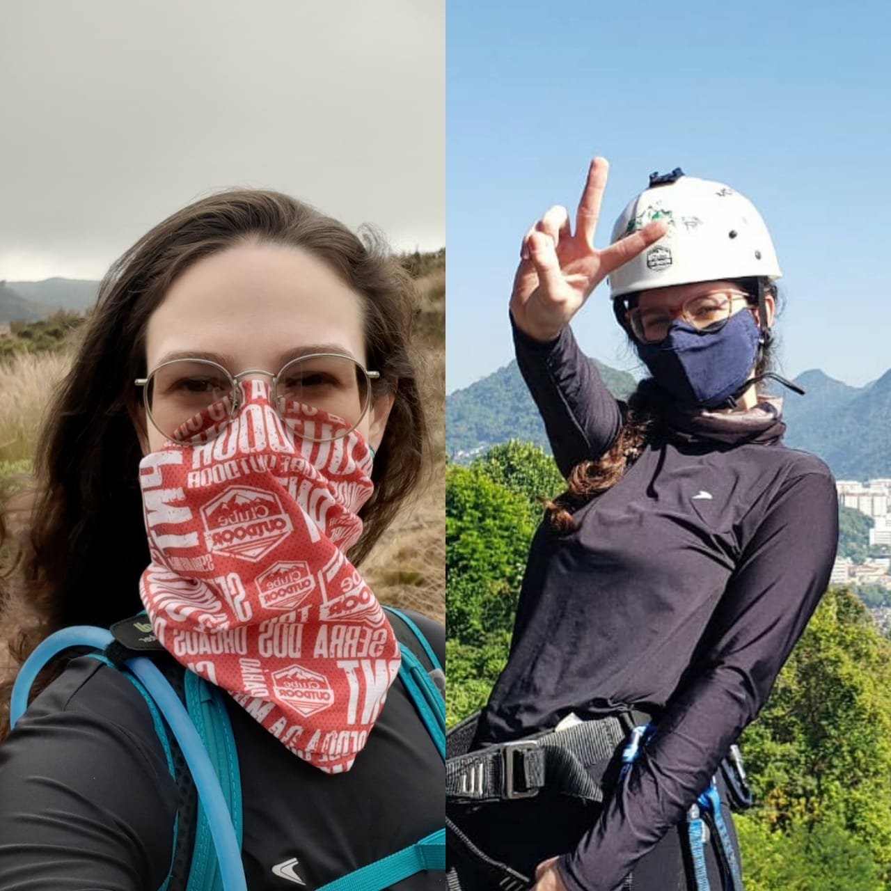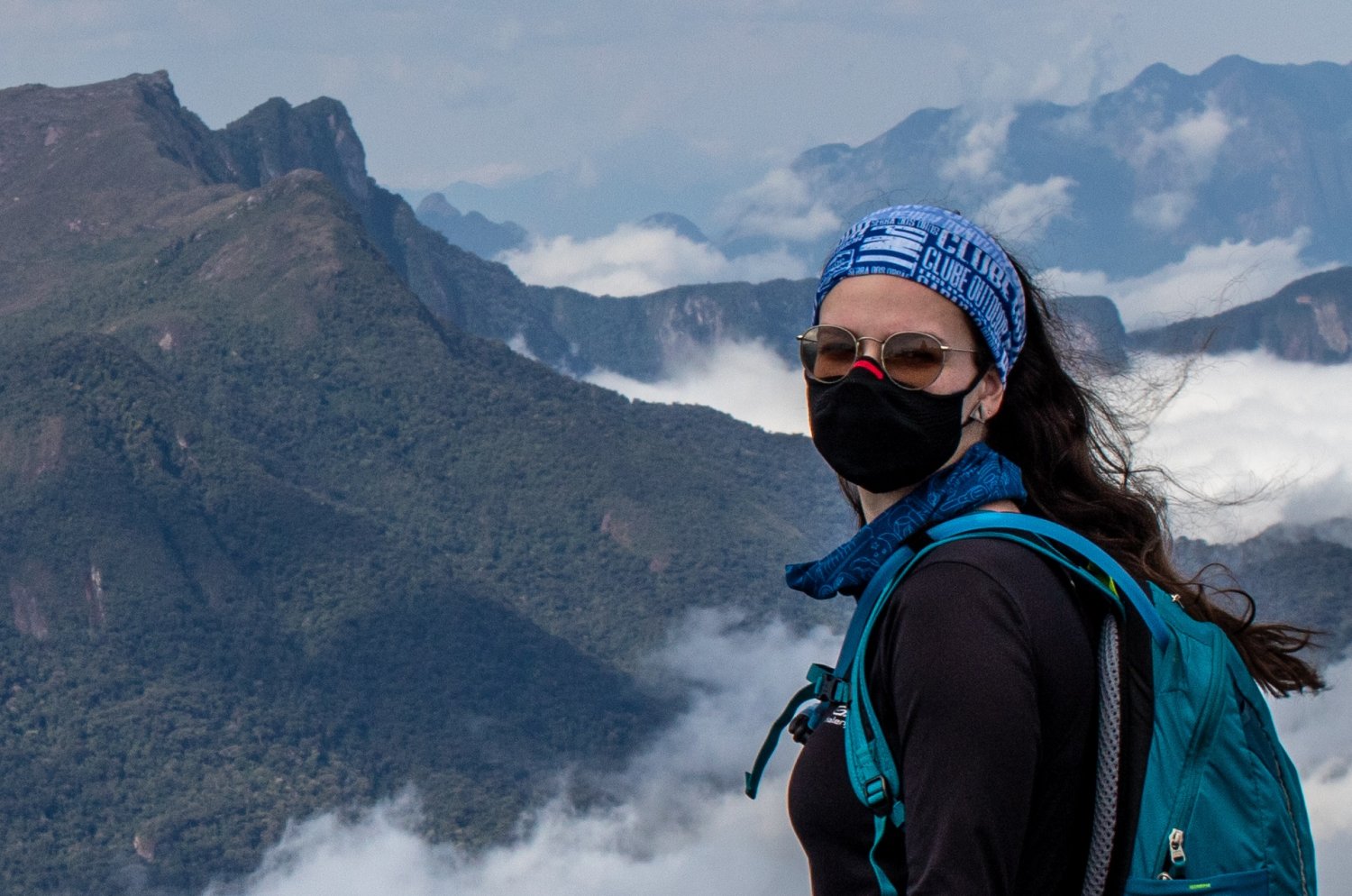 Desta forma, sempre venho usando algum tipo de proteção: bandanas tubulares, máscaras de pano, máscaras descartáveis... Esses têm sido itens indispensáveis nas minhas caminhadas e escaladas por aí afora.
