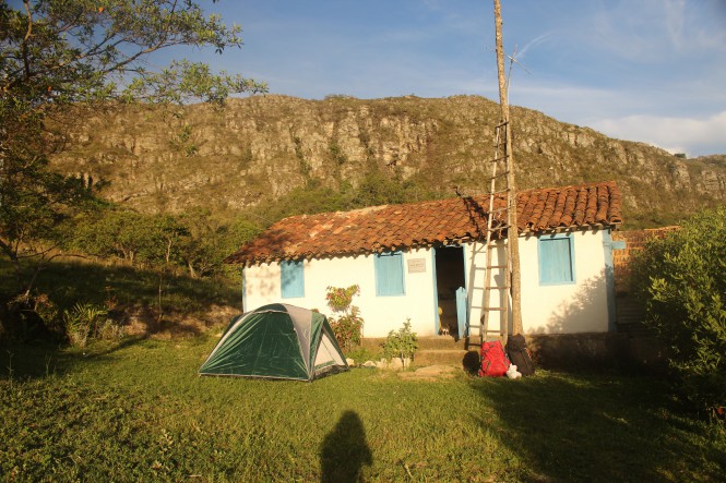 Sr.Lucas, muito simpático, nos deu água gelada, limpou o quintal pra gente montar a barraca, e papeou até a hora de irmos dormir. Contou várias coisas de sua tia, mostrou fotos, alguns objetos antigos... Um amor de pessoa. Além de ter esclarecido que seria quase impossível voltar de Tabuleiro para Lapinha de ônibus; resgate não era opção outra pois custava 'apenas' 450 Temers. Ficou claro que teríamos que voltar pela trilha. E aí decidimos fazer tudo em 4 dias, onde op último dia era para o nosso retorno pela via tradicional.