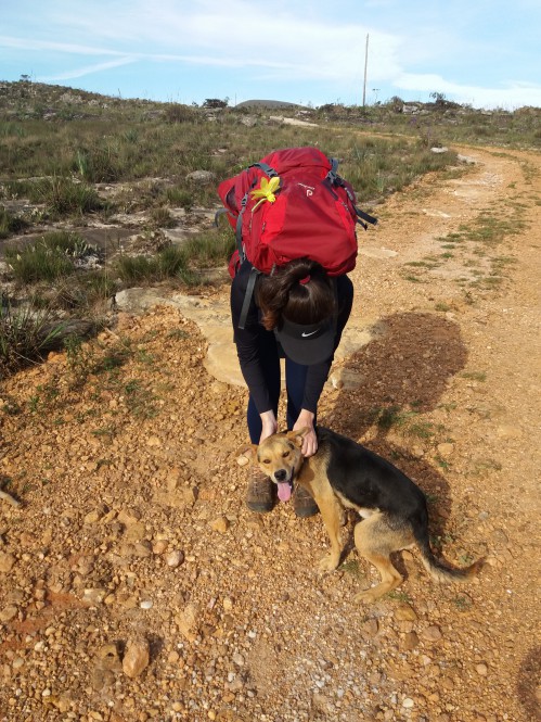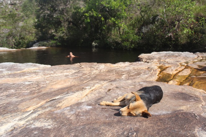 Chegamos no Sr.Zé depois de ter curtido tudo da parte alta. Preparei a janta, comemos, alimentei o Stuart e deixei um potinho com água perto da nossa barraca. Fomos dormir e o fofinho deitou no meu chinelo do lado de fora da barraca.