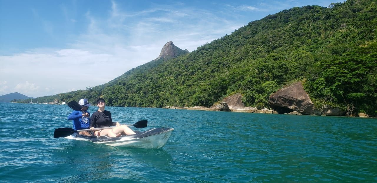 Aproveitamos muuuuito o caiaque, paramos no meio do mar pra nadar, fomos remando em algumas prainhas... Foi uma experiência muito legal!