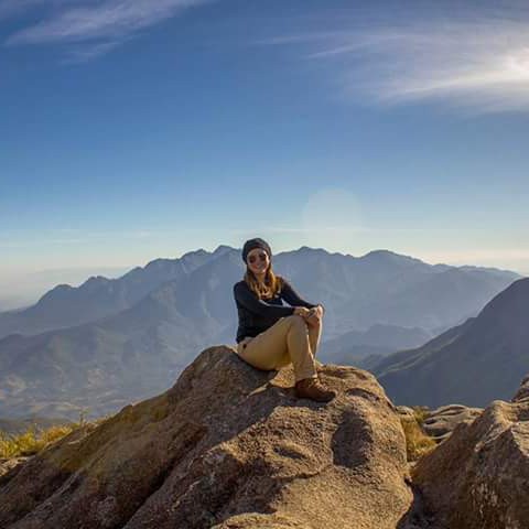 Ao fim de cerca de 1h de descanso pra comer e tirar um cochilo, continuamos a pernada até chegar em uma subida curta, porém chatíssima, de pedras soltas e cascalhos. Esse é o último esforcinho e leva até o Cruzeiro, onde há um planalto indicado por várias setinhas de madeira. Nesse local tem uma enorme área camping, com uma vista absurda da serra toda. Ali a gente assistiu o Sol se pôr, lindão.