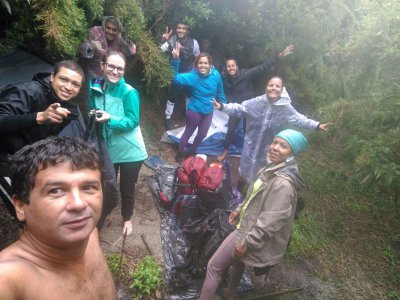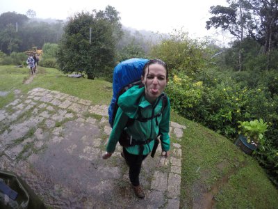 Caraca, quanta chuva! Me lembrou a do Bonete que pegamos a volta toda com um temporal! Eu costumo levar saco estanque para as câmeras e as mudas de roupas em sacolas plásticas mesmo hahah, já segura bem a chuva caso passe na mochila! :D