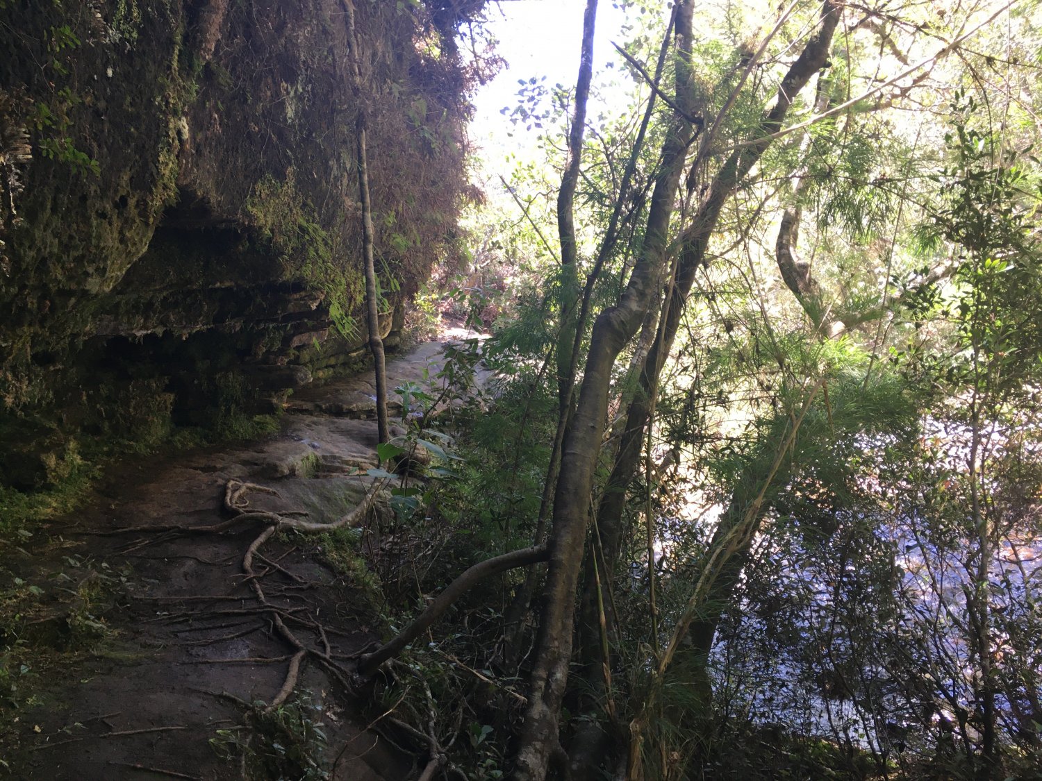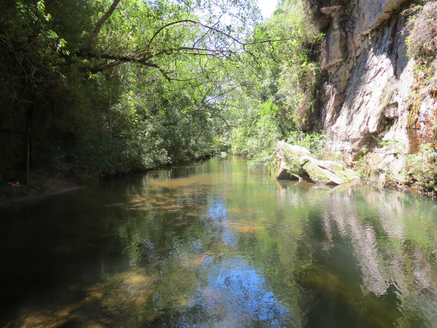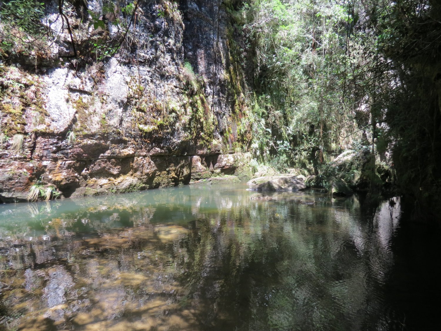 Passado o friozinho na barriga, é só seguir o caminho pelas beiradas e ver o maravilhoso cânion de Jaguariaíva e a cachoeira ao fundo. Com águas bem transparentes, dava para ver alguns peixes nadando. As pedras dentro do rio são bem escorregadias e exigem muita atenção pra não capotar e se machucar. Segundo pesquisadores, esse lugar um dia foi mar, por isso você encontrará areia ali, igual as que tem no mar.
