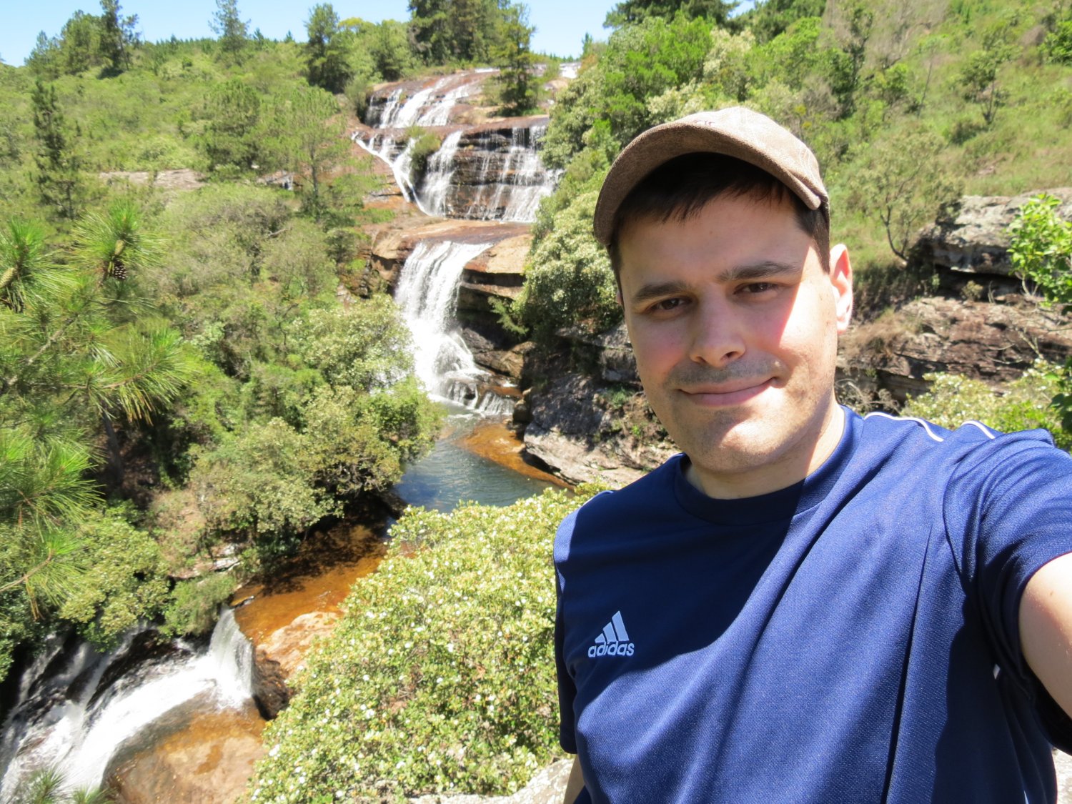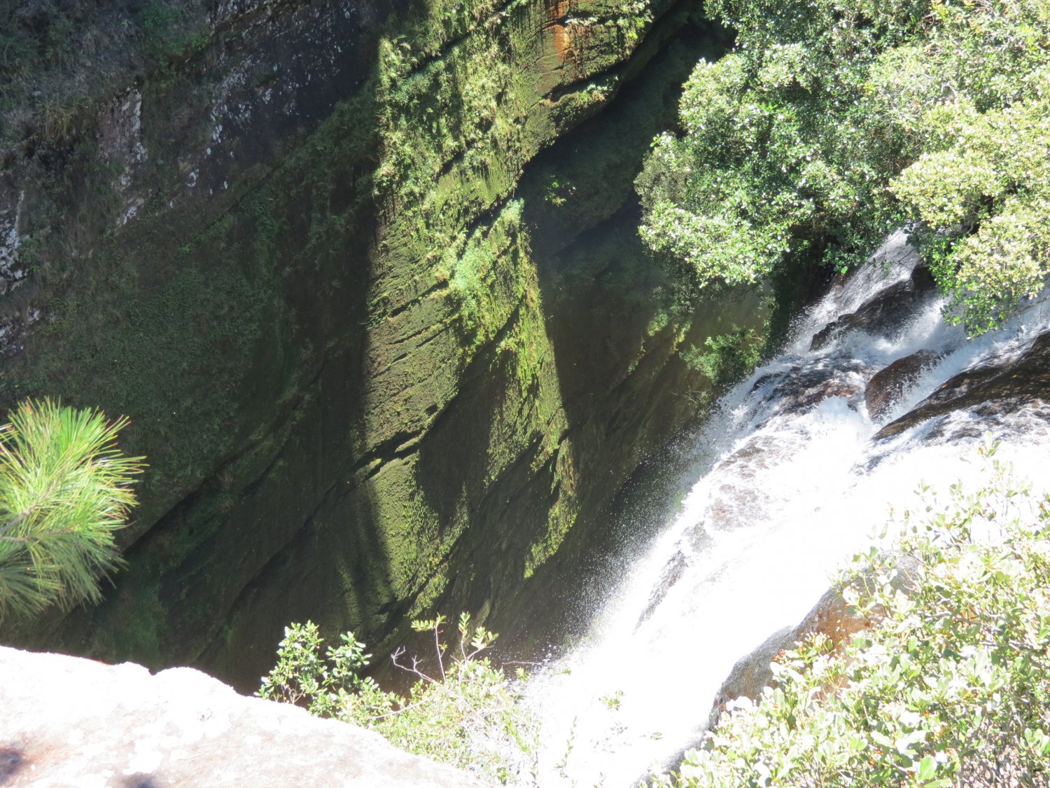 Primeiro subi até o topo, onde se encontra a outra cachoeira (Andorinhas) e parte de cima do cânion. Na verdade não ficou claro pra mim qual cachoeira tem o nome de Andorinhas e qual é Véu de Noiva, mas enfim kkk.