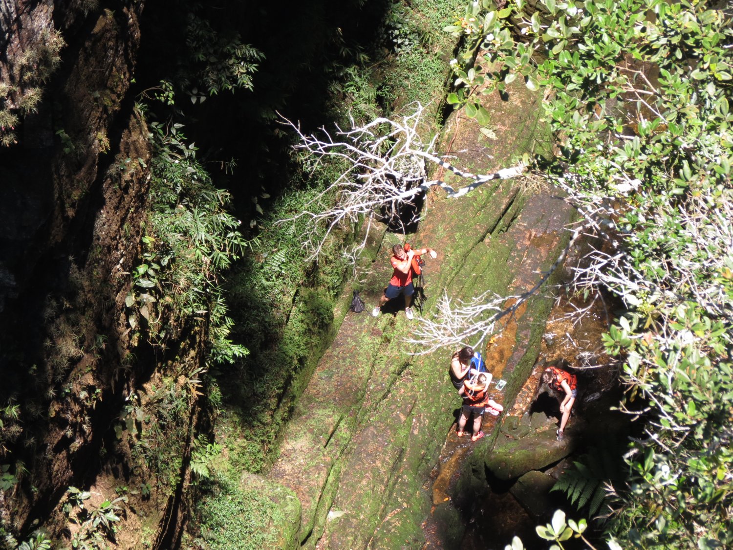 Foi possível ver lá do alto um pessoal fazendo aquatrekking dentro do cânion, atividade que te leva até a cachoeira.