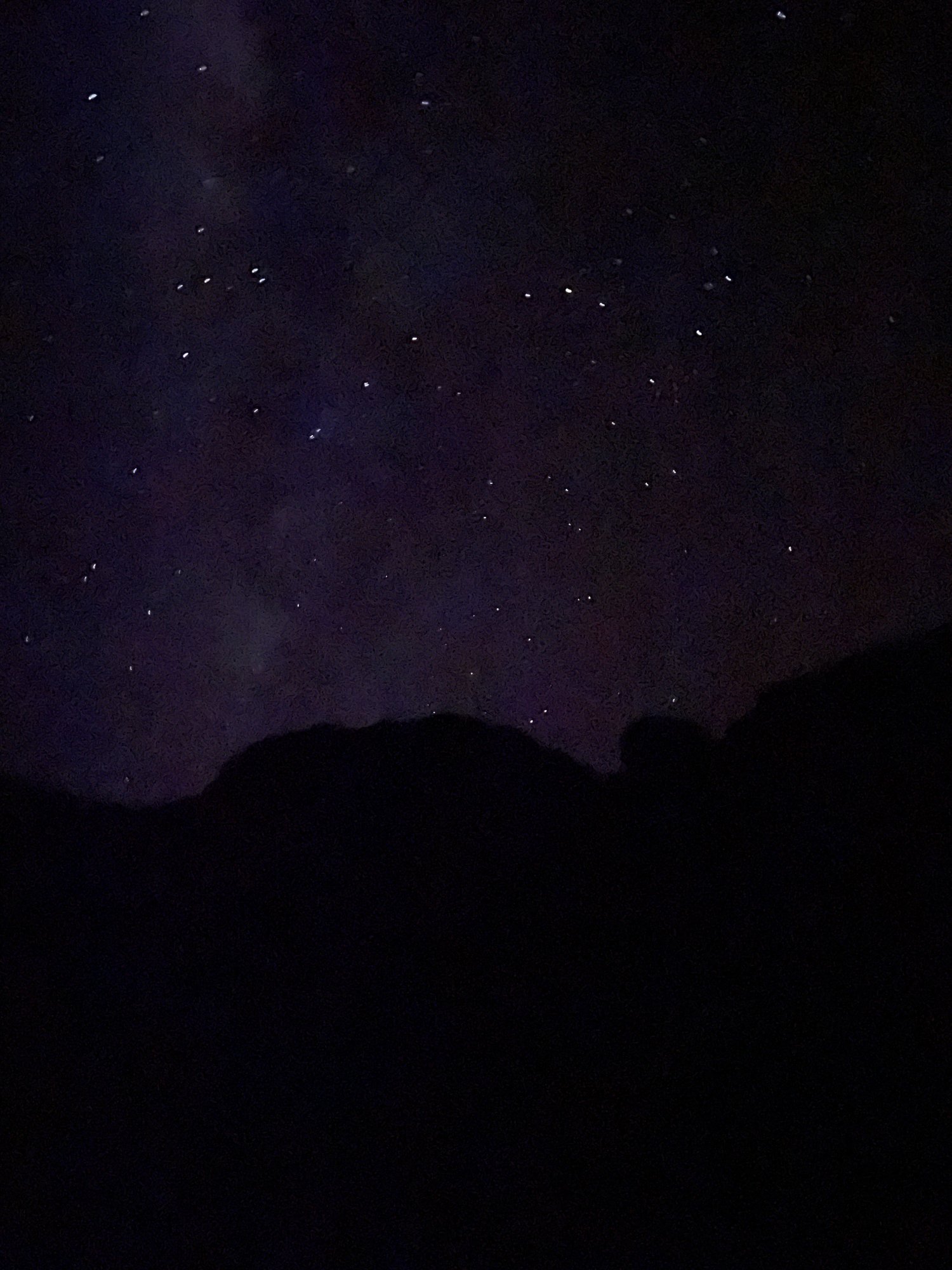 A noite foi de lua nova, escura e de céu muito estrelado! Pudemos ver perfeitamente a Via Láctea. Um de nossos amigos esqueceu o saco de dormir, mas lembrou de trazer um "laser" com o qual ficamos apontando estrelas até a hora de dormir.