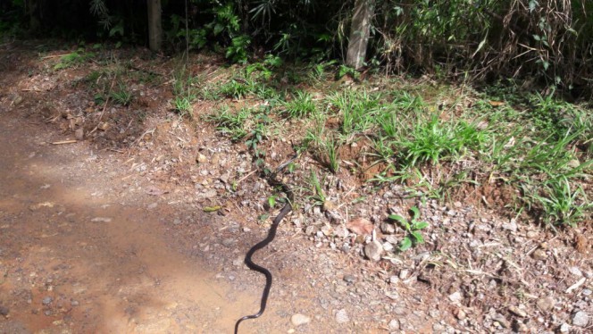 Enfim a terra o barro, logo no ínicio da estrada ví uma aranha caranguejeira atravesando a rua, gigante! Fato inedito ahhahahah, continuei o pedal e uns 500 metros a frente, uma cobra caninana linda! Com uns 2m, suas cores preto brilihante e amarelo era show demais, ambos animais inofensivos, porém a caninana é muito agressiva!