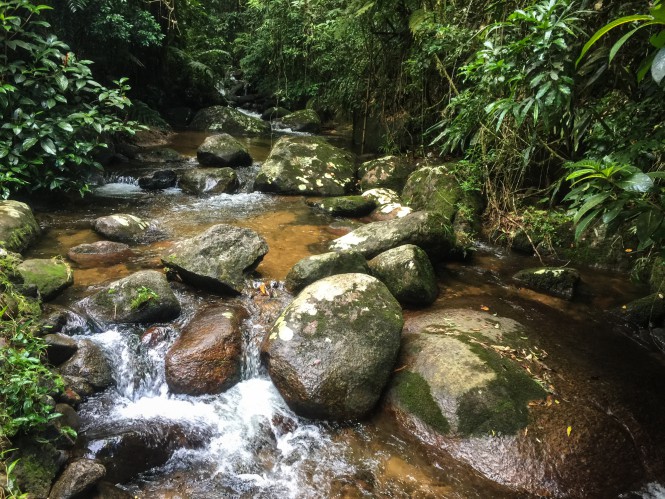 Mas logo descemos pois acaba a rua. Após uns 3km de pedal chegamos no Sertão da Quina, bairro com mais casas, ruas asfaltadas e sem muito verde, seguimos pela avenida principal com destino ao Sertão do Meio, onde ficam localizadas as cachoeiras, uma das mais famosas é a Cachoeira da Renata, alí existem vários estacionamentos e alguns bares.