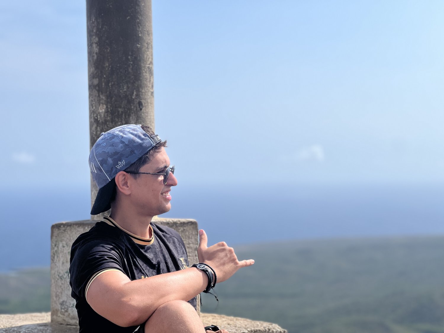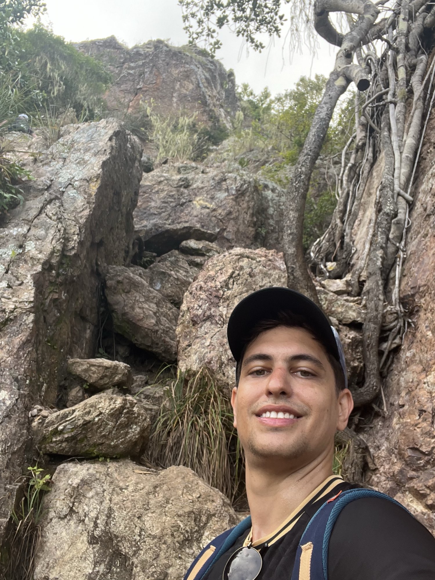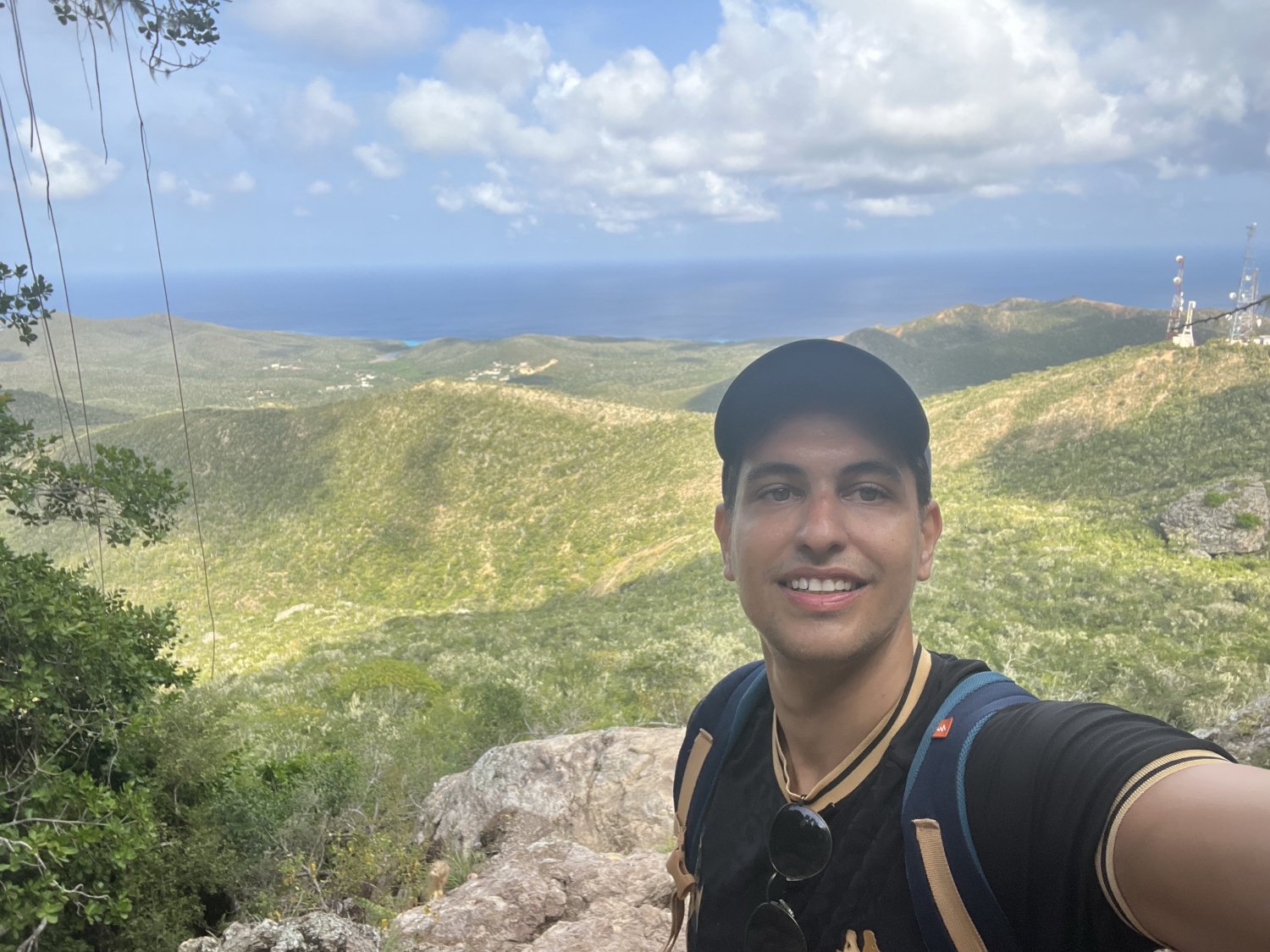 e finalmente... chegamos ao topo. Lá de cima temos uma vista bem legal da ilha e ainda dá para ver a água azul turquesa de algumas praias.