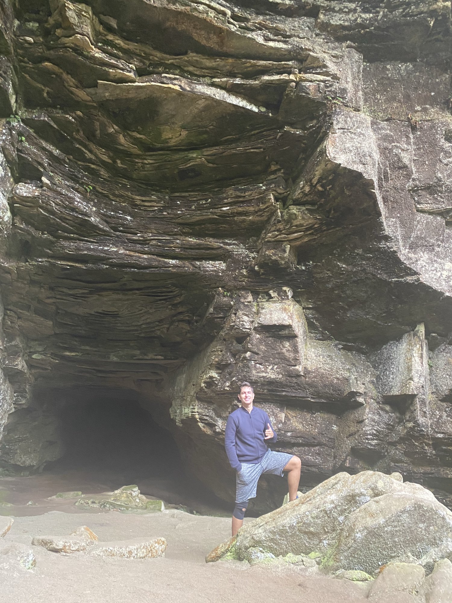 Na volta, em direção a entrada do Parque, resolvemos ir conhecendo as diversas paradas que tem na trilha. Logo depois do Pico, dobrando à esquerda, tem uma gruta muito legal. Vale a pena conhecer e tirar umas fotos.