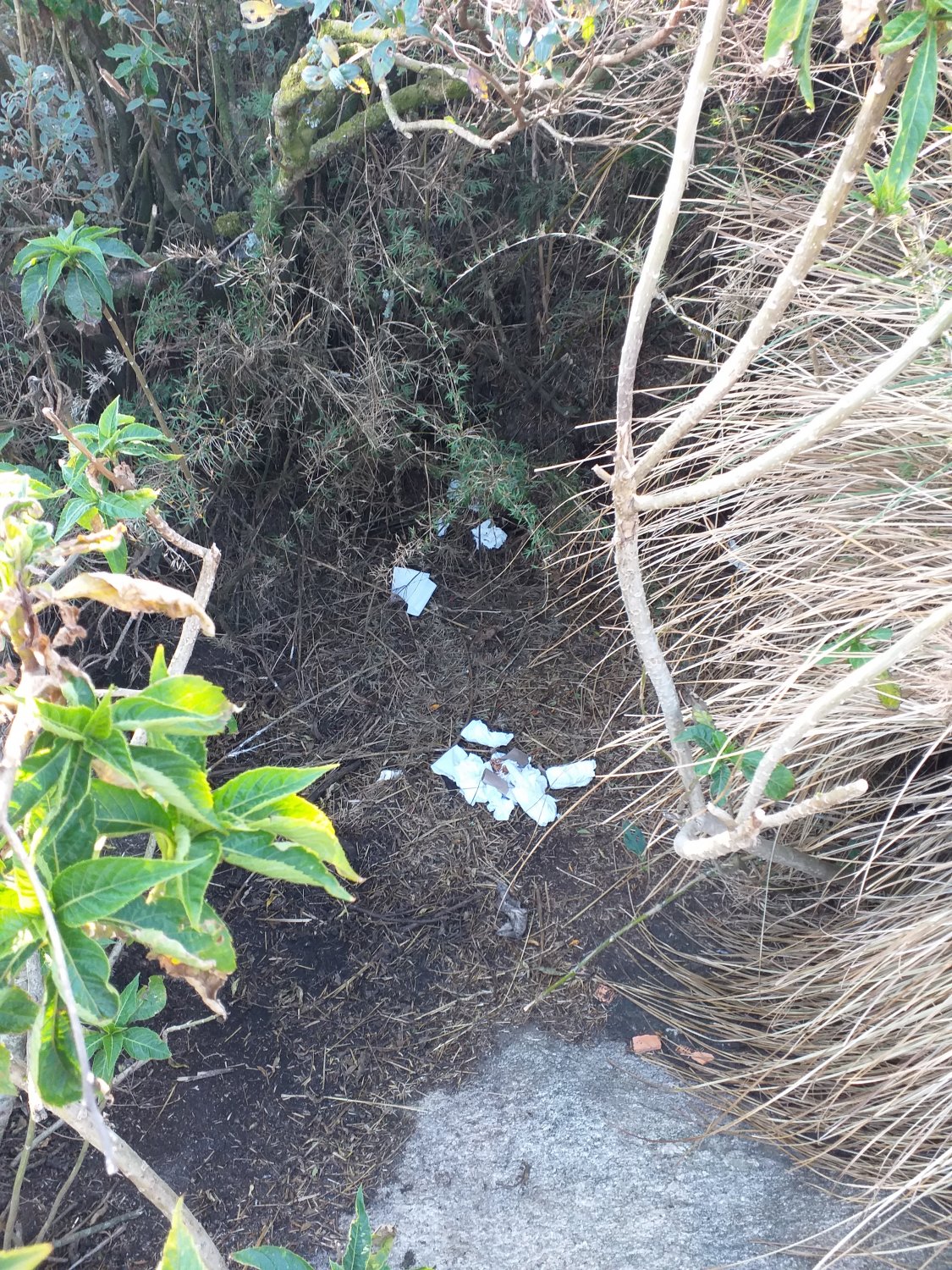 Ponto onde possivelmente foi um "banheiro" e quem usou deixou o lixo orgânico.