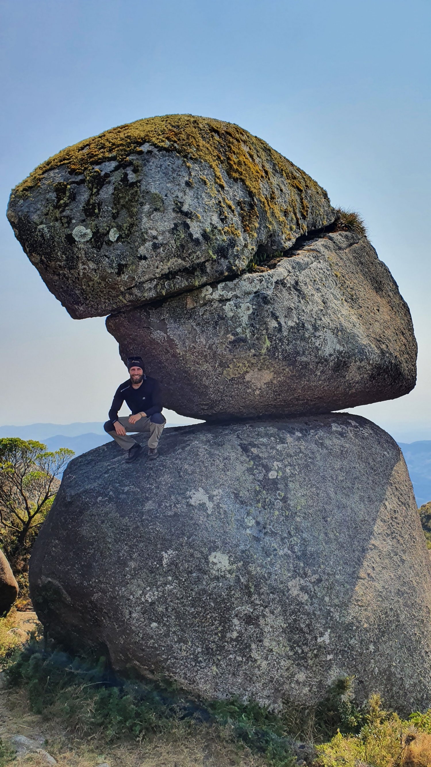 A subida não foi tão complicada e em alguns minutos já estávamos na Pedra Redonda (que não é redonda) onde aproveitamos para tirar um pouco a mochila e comer algo e colocar nossa vida em perigo um pouco subindo uma parte da pedra redonda (tenho que levar mais a sério o que aprendi no curso de primeiros socorros sobre prevenção de acidentes).