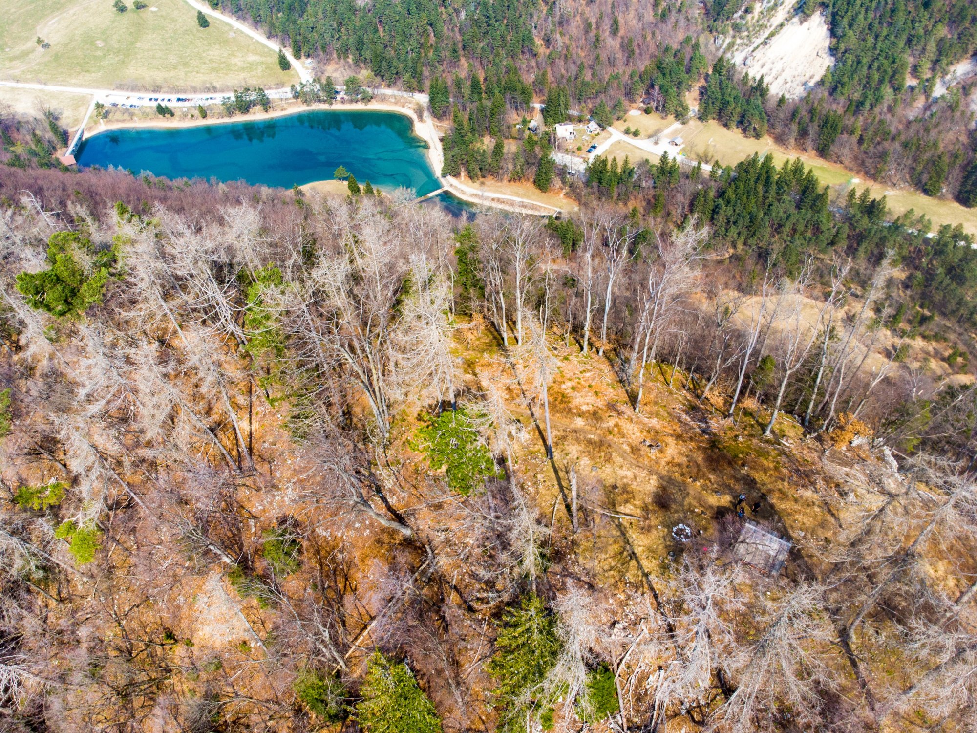 Passeio perto de Bled na Eslovênia. Lago de Završnica é uma represa num vale lindo em baixo da montanha Stol, perto de Bled na Eslovênia.