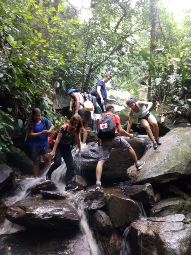 11-É normal tomarmos banho de cachoeira de roupa, inclusive calça e tênis.✅
