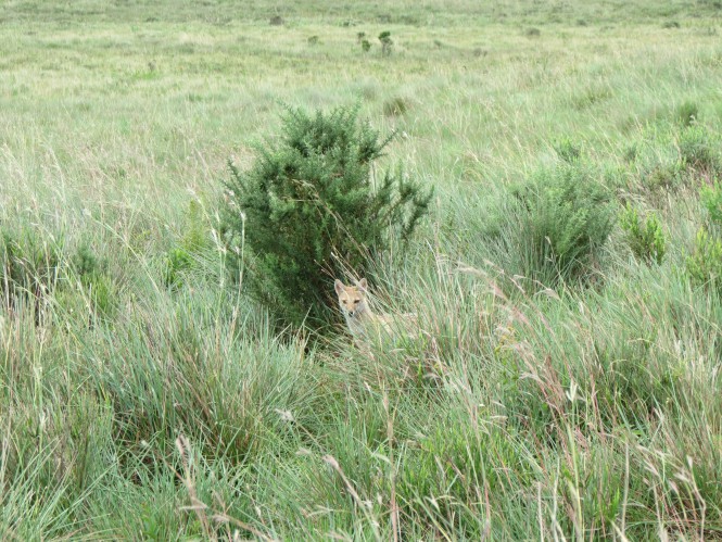Nos deparamos com umas raposas, conhecidas como Graxaim. Pareceu-me que estão acostumadas com as pessoas, porque os filhotes chegaram perto de nós, inclusive uma estava brincando com um pedaço de papel. Imediatamente o guia notificou via rádio os fiscais do parque que havia uma situação de risco para os animais.