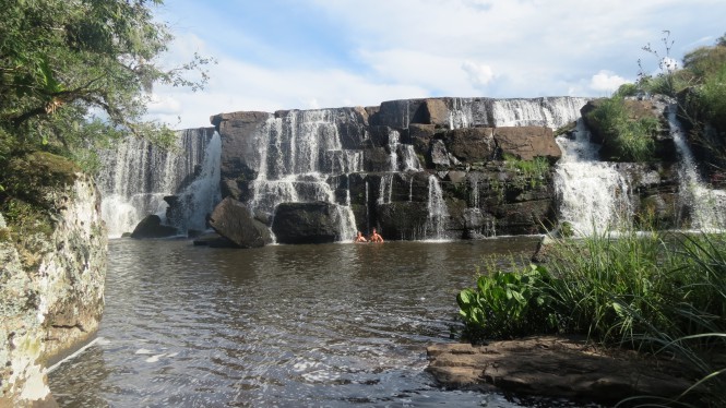 A cachoeira é bem extensa, são várias quedas, acho que dá uns 100 metros de extensão, na foto não foi possível registrá-la por inteiro. A única dica é: leve repelente.