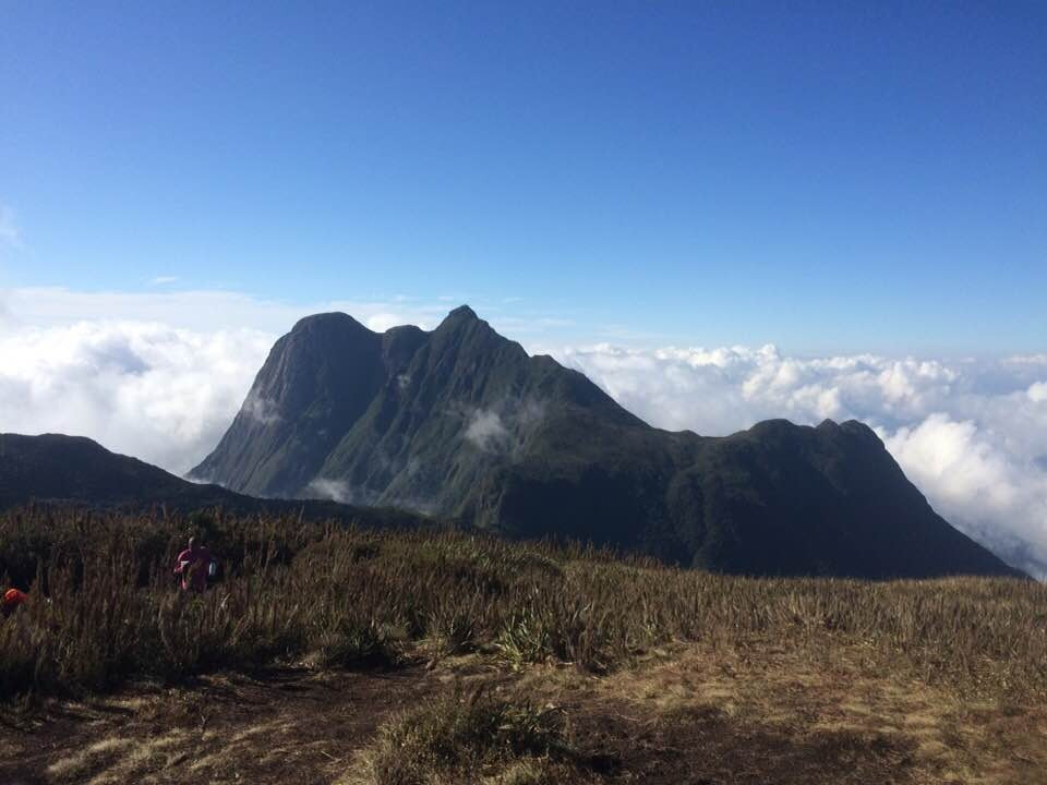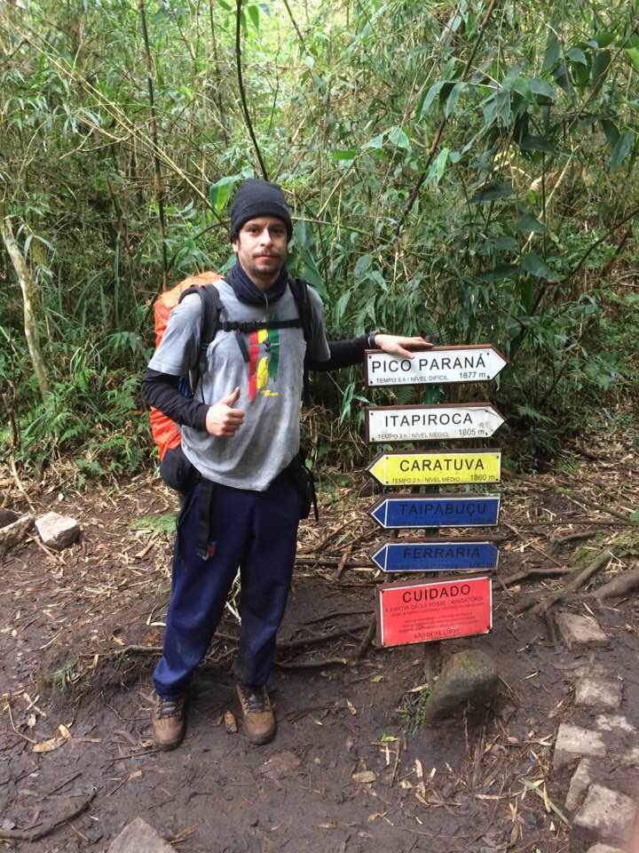 Ás 14h30 do sabadão iluminado pelo sol e céu azul eu parti pra finalmente conquistar o Pico Paraná, em meio a caratuvas comecei a trilha, levando nos bolsos, água, amendoins, banana passa e uma capa de chuva. O visual da trilha é magnífico, com as nuvens bailando no céu a todo instante, mostrando e escondendo o PP, não havia quase ninguém subindo ou descendo, poucas pessoas iria encontrar na trilha, havia ainda alguns trechos com grampos, uns cinco, trechos curtos sem muita dificuldade, mas por conta desses trechos tinha criado uma pequena distância do pessoal e conversando com meus pensamentos me dei conta de que eu estava fazendo exatamente o que desejei, subindo o Pico Paraná sozinho, num sábado à tarde e de sol, e melhor ainda vindo de uma travessia insana, pohaa não podia estar mais feliz, tinha esperado um bom tempo por aquilo e estava fazendo da minha maneira, realmente as coisas só acontecem na nossa vida quando falamos SIM para as oportunidades, eu poderia ter ficado em casa de buenas, no conforto do lar, mas durante aquela semana eu tinha visto muito sobre guerrilhas e todo esforço físico e mental que envolve esse sacrifício, então me pus a prova numa travessia de 4 dias e 3 noites.