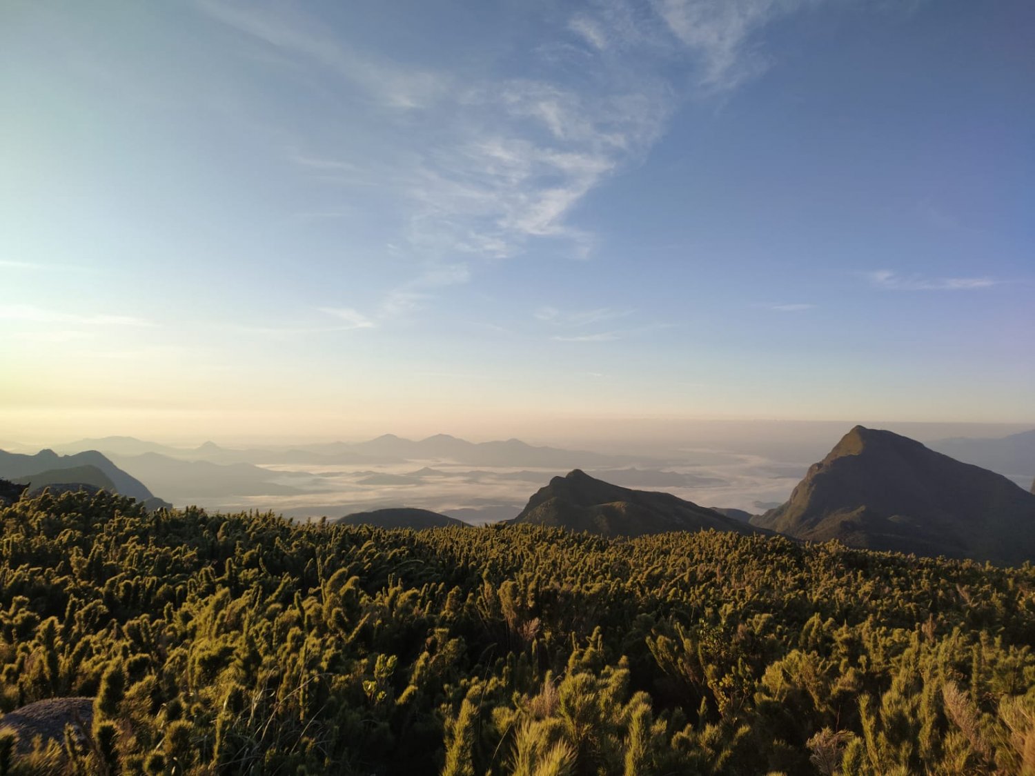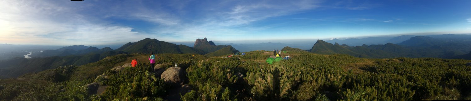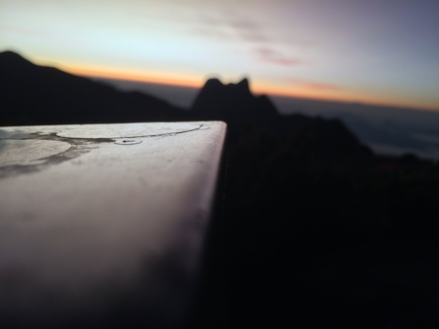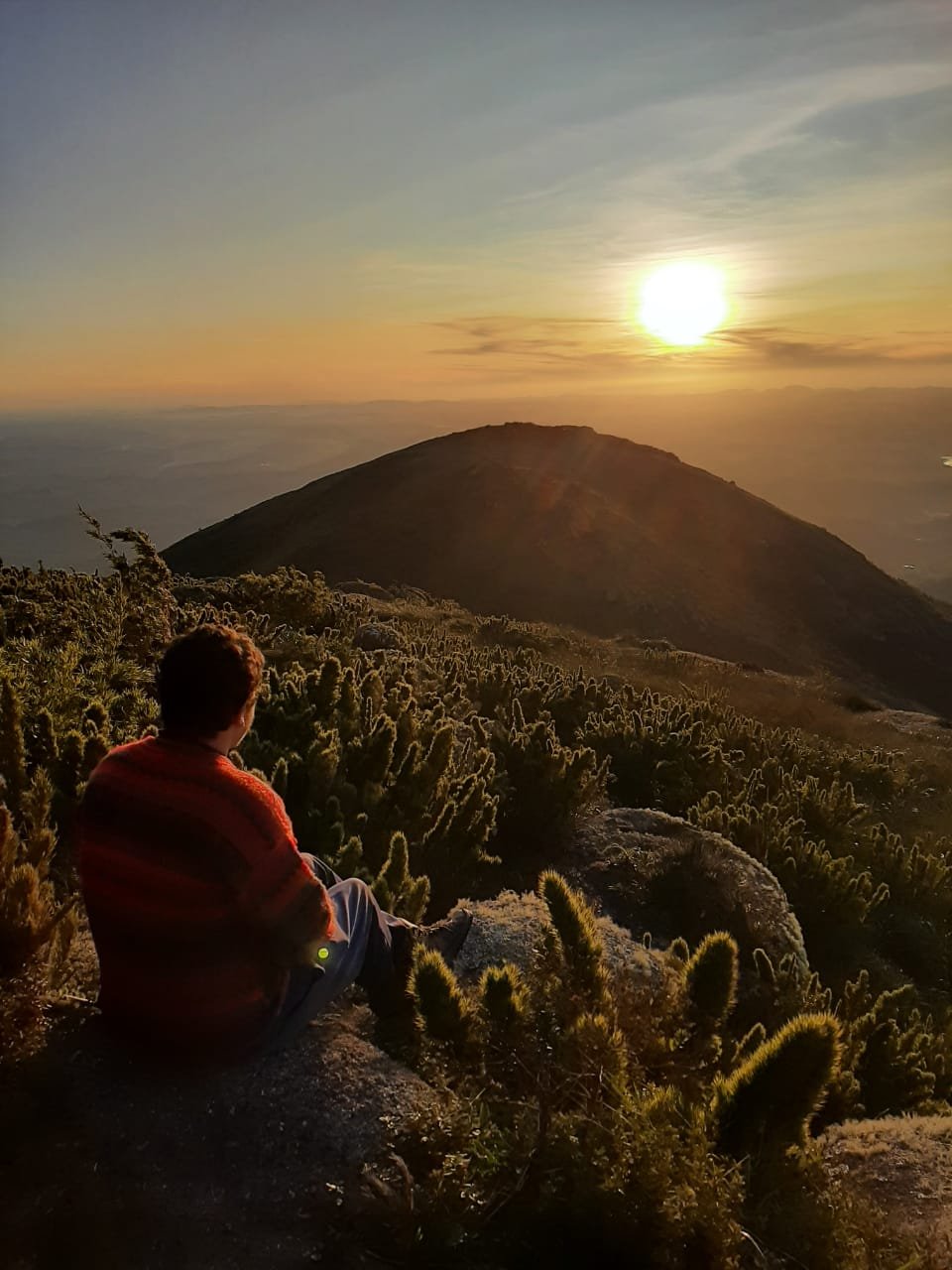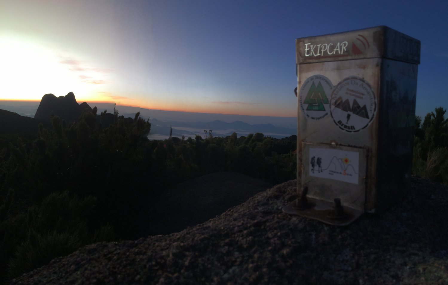 Às 6h já estou desperto pra ver o nascer do sol, não dormi perfeitamente bem pq no lugar que a barraca estava eu tinha meio que ficar numa posição de tetris pra me sentir confortável, o que não era fácil, pela manhã faziam 2°c, a menor temperatura da noite, quando os primeiros raios de sol vem varrendo os ventos gelados do fundo dos vales, a princípio fiquei vendo dentro da barraca mesmo pq tava um frio da poha! Mas logo sai pq quem tá na chuva é pra se queimar, me impressionou muito a semelhança do PP e do conjunto de montanhas ao redor com a própria Pachamama, a silhueta do PP sendo o rosto e as montanhas do redor o restante do corpo, nas fotos fica bem mais claro, o interessante é que de cada pico daquele que tu estiver o PP vai ter uma aparência diferente. O nascer demorou um pouco, já eram quase 7h, de onde eu estava consegui ver ele perfeitamente, aquela bola de fogo nuclear criando forma mais uma vez no horizonte num espetáculo que se repete dia a dia desde o alvorecer dos tempos, no cume tinha um cara que estava filmando o nascer e enquanto isso conversamos uma prosa e ele me ensinou demais sobre as montanhas de lá e de todos os outros conjuntos ao redor, o cara já tinha feito quase todos os picos da serra, foi dando os nomes, contando histórias, macetes, era basicamente tudo que eu queria saber, conjunto PP, Marumbi, Pedra Branca, Morretes, Porto Paranaguá, Ilha do Mel, Curitiba, Cont.do Cerro Verde, aí foi me falando e explicando alguns pontos, depois dessa aula descemos e cada um foi arrumar suas coisas pq ali o tempo voa acelerado.