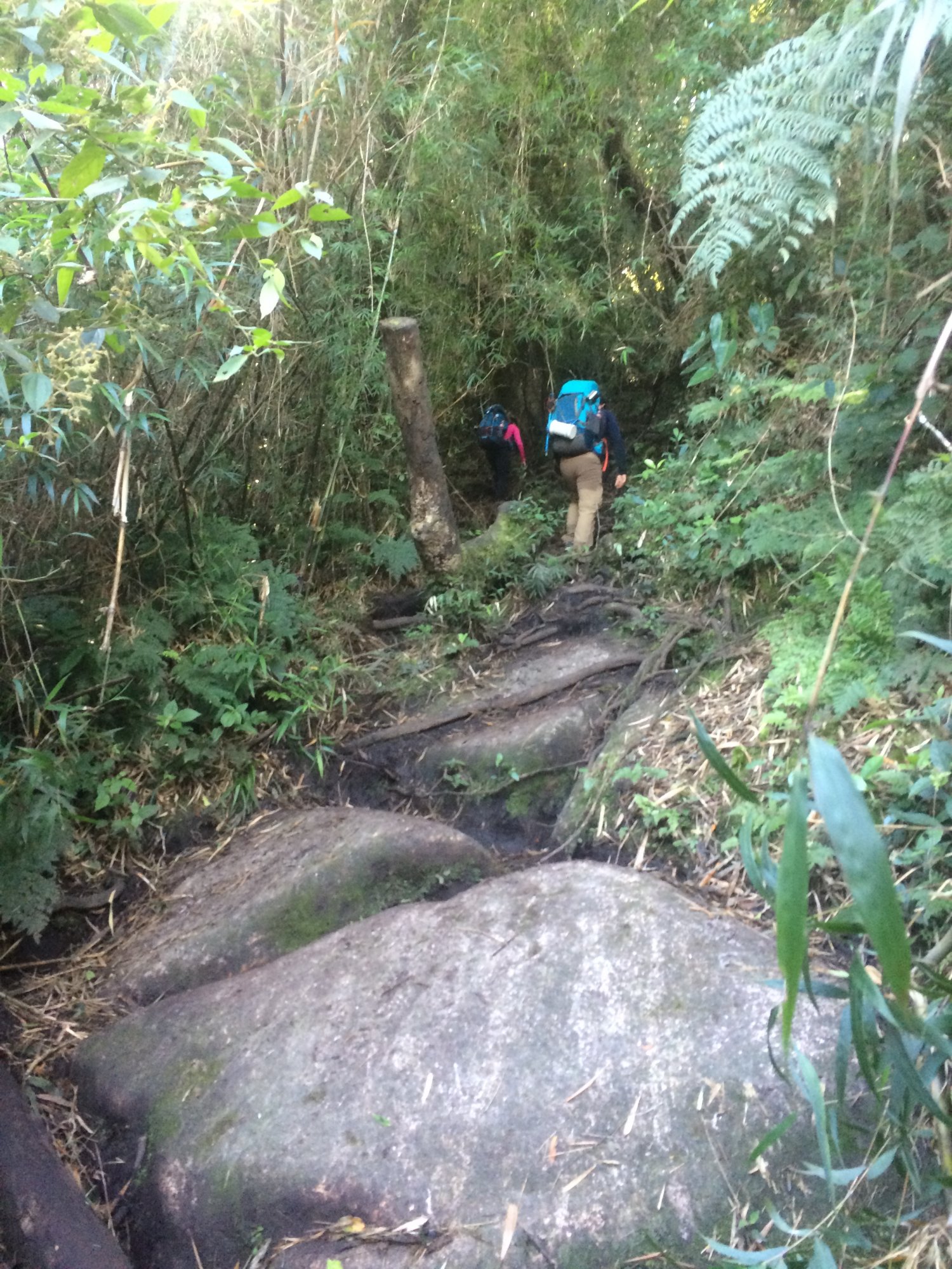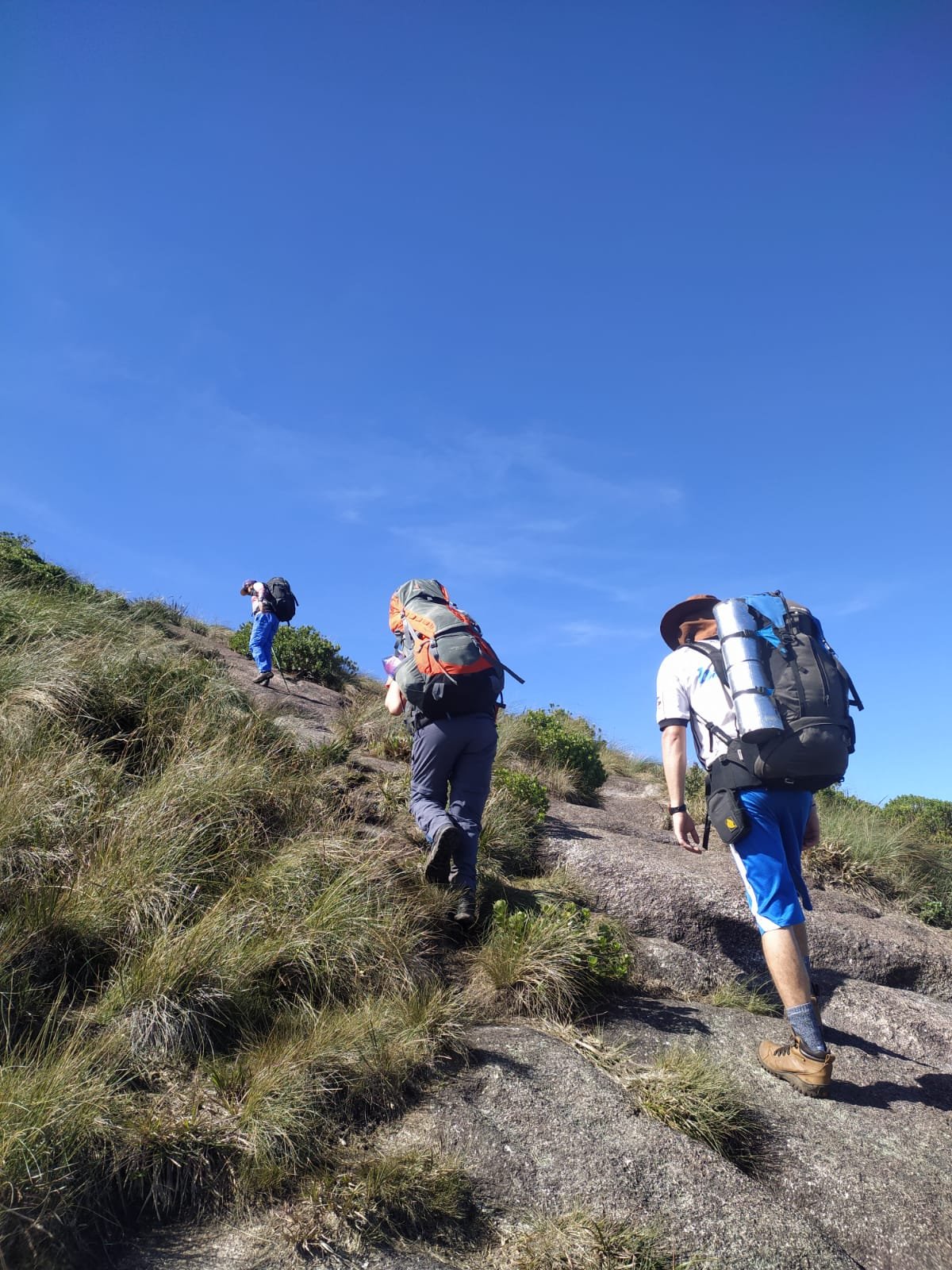 Ao chegarmos na parte de mata eu optei por descer sempre de frente usando bastante as mãos, nesse fim de semana em especial além de pegarmos um ótimo tempo, a trilha estava sem lama! Lógico que alguns trechos tinham, mas nada comparado a quando a galera veio anteriormente, segundo eles estava muitoo escorregadio e isso dificulta bastante os trechos de trepa pedra, esse fato também ajuda a deixar esses conjuntos de montanhas bem mais complicados, imagina no verão que chove dia sim, dia sim…