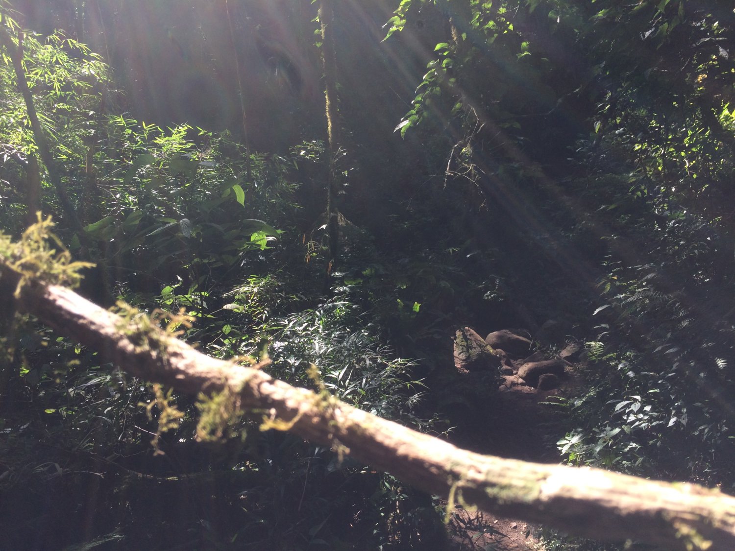 Na volta a pressa já tinha ido embora, sabíamos que o tempo nos favorecia, o clima estava ótimo, o sol entrava nas frestas por entre as árvores enquanto pelo emaranhado de raízes nossos pés vão encontrando caminho, e dá-lhe descida; dois pontos aqui, a trilha em si estava limpa, alguns plásticos aqui e acolá, mas limpa, e não avistamos nenhum animal, além dos de duas pernas; fechei a volta em 3h29, lógico que dá pra fazer em menos tempo, mas eu vim bem tranquilo e só preocupado em aproveitar.