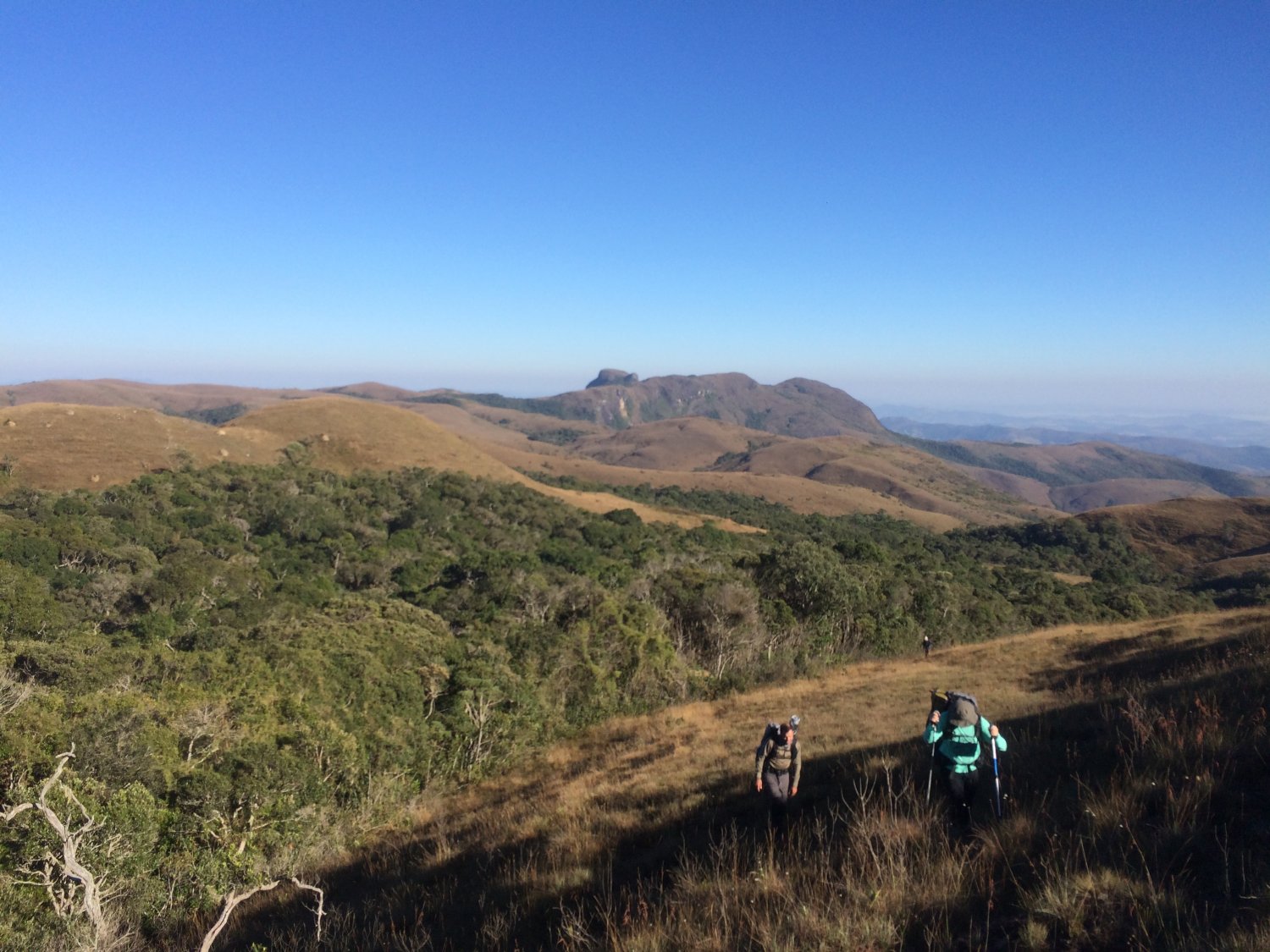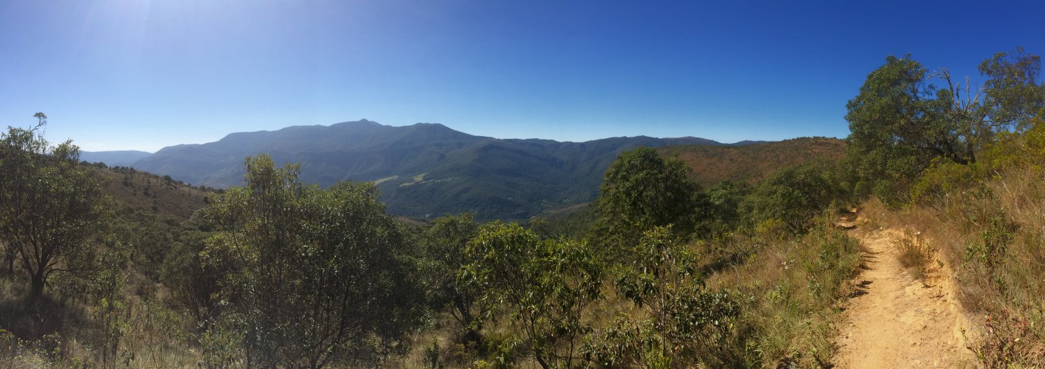 Subindo uma encosta com o Morro do Chapéu e a Serra do Careta ao fundo