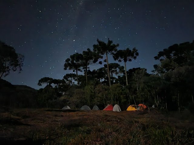 Logo a noite caiu e os fogareiros começaram a ronronar, galera preparando cuscuz marroquino, carne seca, salada de cenoura com atum, tava bonito! Ali aprendi bastante também sobre comida em pó, sobre grãos, sobre como preparar rangos assim, que além de ajudar a tirar peso e volume da mochila, são rangos gostosos, aquele dia todo teve sabor de roda de conversa com recheio de aprendizado. Depois que todos comeram, cada um foi se entocar pra descansar, e eu fui na mesma pegada também, não sem antes dar mais umas espiadelas no céu de brigadeiro que fazia, como de costume essa tinha que ser a última visão antes de dormir, e aí enfim parti para o merecido descanso, naquele dia andamos cerca de 15km, em 4h15 de caminhada, com um ganho de altimetria de uns 500m, o dia estava ganho, agora era descansar para o que diziam ser o dia mais difícil de toda a travessia, boa noite.