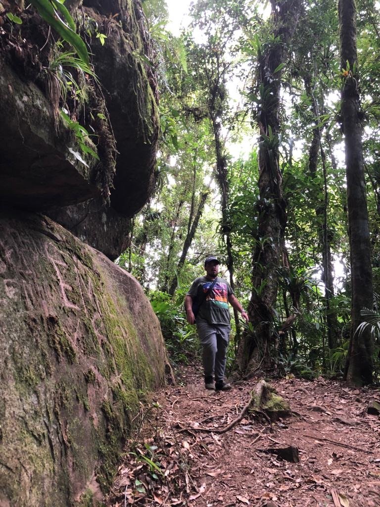 A trilha comeca em frente q cachoeira do bau de quase 60metros de altura excelente para a pratica de rappel, apartir dali comeca a trila na sua primeira parte ela e bem facil pouco ingrime e bem limpa, a segunda parte e proxima ao cume apartir dali a trilha vai rodeando o cume que e uma rocha, apartir desse ponto deve se tomar cuidado pois e praticamente uma escalada com um grau de risco baixo porem sempre existe o risco de cair, chegando la em cima e possivel avistar boa parte do litoral de sc e cidades como gaspar blumenau luis alves ilhota e ate mesmo jaragua do sul , altura dele chega ah quase 900metros