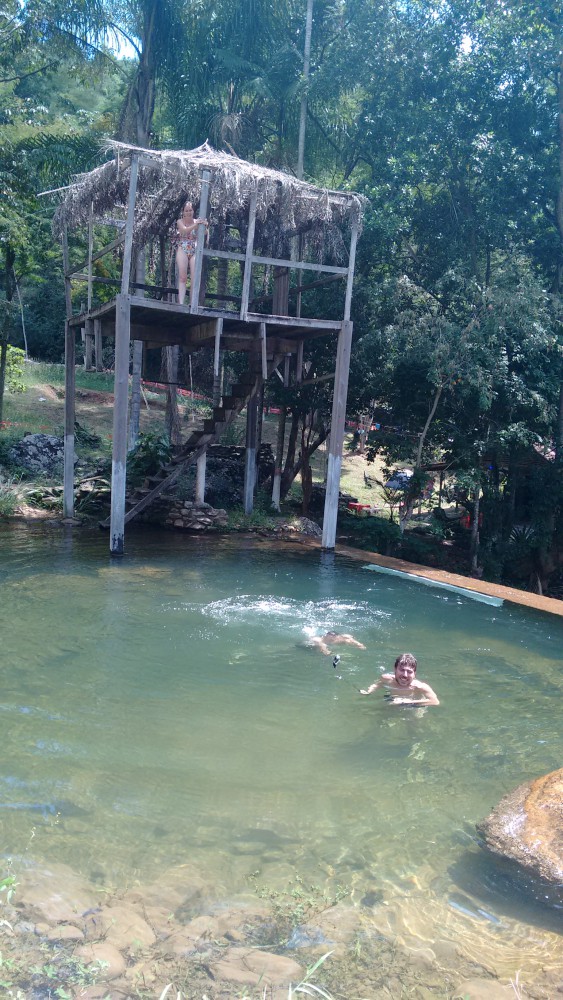Acordamos cedo e decidimos após o cafe aproveitar a estrutura do camping. Após uns pulos e tentativas de atravessar o slack-line montado por cima da piscina decidimos explorar mais a região e fomos ao poço do egito. Logo após sair do camping continuamos seguindo em frente e dobramos a primeira esquerda. Após subir uma estrada apertada chegamos no poço. Fomos surpreendidos na entrada com a cobrança de R$ 10,00 por cabeça. Relutante acabamos pagando, ja que a gente ja estava la mesmo. O poço é bem bonito, de mais facil acesso que Hidrolandia, pra quem não gosta de se arriscar nas pedras, é uma boa pedida. Mas como gostamos de programa de indio mesmo, o sangue de cabra escaladora dos alpes ferveu na veia e fomos descendo o rio pelas pedras e após uns 50 metros de descida encontramos um poço bem maior, mais fundo e lindo demais. A mistura do verde em volta da região, com as pedras e agua cristalina fazem o lugar ter uma beleza impar. Demos uns bons mergulhos e depois com um pouco de câimbra devido a agua fria tomamos rumo de volta a nossa base. Depois de um descanso e um merecido almoço, desarmamos acampamento e rumamos de volta a Vitória.
