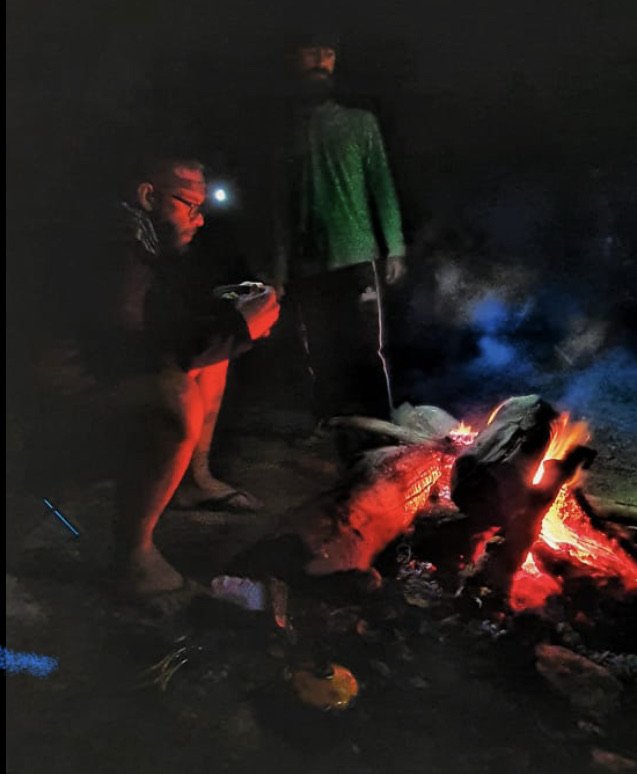 Ao chegar no rancho, fizemos nosso procedimento padrão de banho/acampamento/jantar e até uma fogueira, afinal, o frio tava insano. A galera do bivak preferiu colocar a lona em uma área coberta, que na verdade era varanda de uma casa de barro utilizada pelos caçadores da região, pra nossa sorte não tinha ninguém lá.