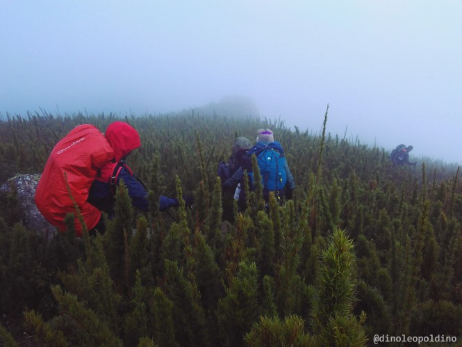Após cerca de 4h subindo, chegamos ao Pico Caratuva (a 3ª maior montanha do sul). No cume o tempo estava diferente. Havia muita nuvem e a visibilidade estava baixa - assim, consegui avistar o PP por cerca de 30 segundos.