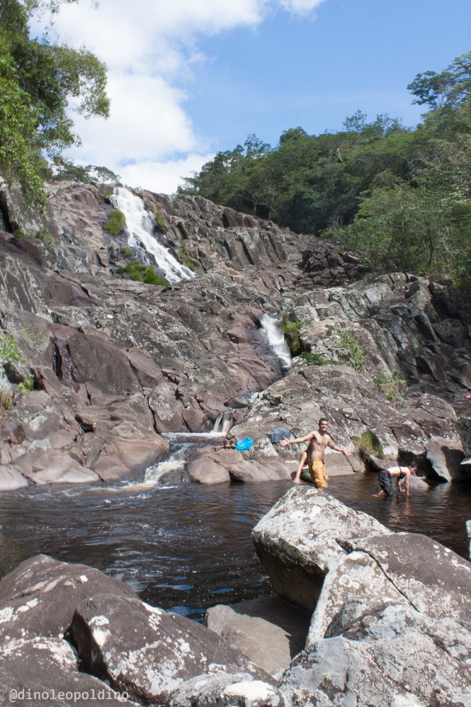 Por termos chegados em BH um pouco atrasados, iniciamos a caminhada tarde tbm. Começamos a andar quase as 10h da manhã. No primeiro dia é uma subida, nos posteriores um platô e descida. Cachoeiras no segundo e terceiro dias. Logo no começo passamos pela linda Cachoeira das Lavadeiras (foto abaixo).