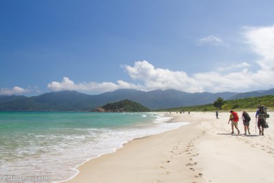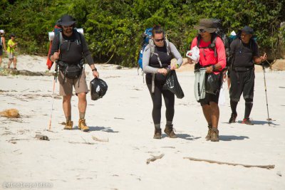 Na praia, na montanha ou no caminho entre eles. independente e autossuficiente. Caminhada e fotografia