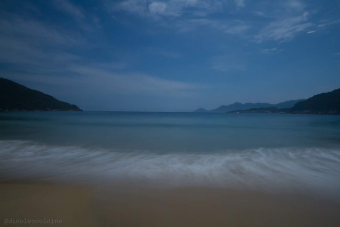 A lua cheia estava maravilhosa e a praia de Parnaioca estava muito tranquila como uma lagoa. Tive que mergulhar! A iluminação da lua estava "tão forte" que era possível ver minha sombra no chão dentro d'água! (e era 1h da madrugada)
