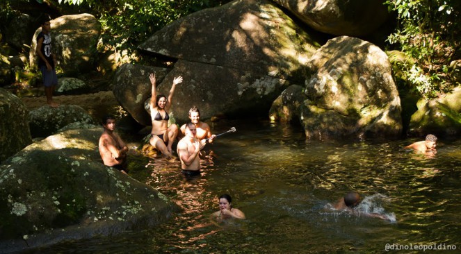 Paramos no Poção para um tranquilo refresco. Com o corpo leve e revigorado seguimos para o fim da caminhada em Abraão às 15h. Uma observação história é que no tempo das fazendas que plantavam café, grupos de escravos acorrentados entre si eram trazidos para tomar banho neste poço. Nas bordas do poço ainda é possível ver resquícios dos anéis de ferro onde eles eram presos.