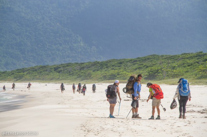 Este foi o dia de descanso. De relaxar. Tínhamos de andar somente 7Km e recolher lixos pelas praias do Sul e Leste. Acordei cedo, dei um pulo na cachoeira de Parnaioca que fica no canto direito da praia, outros foram curtir um pouco a praia, tomamos café e partimos às 10:40.